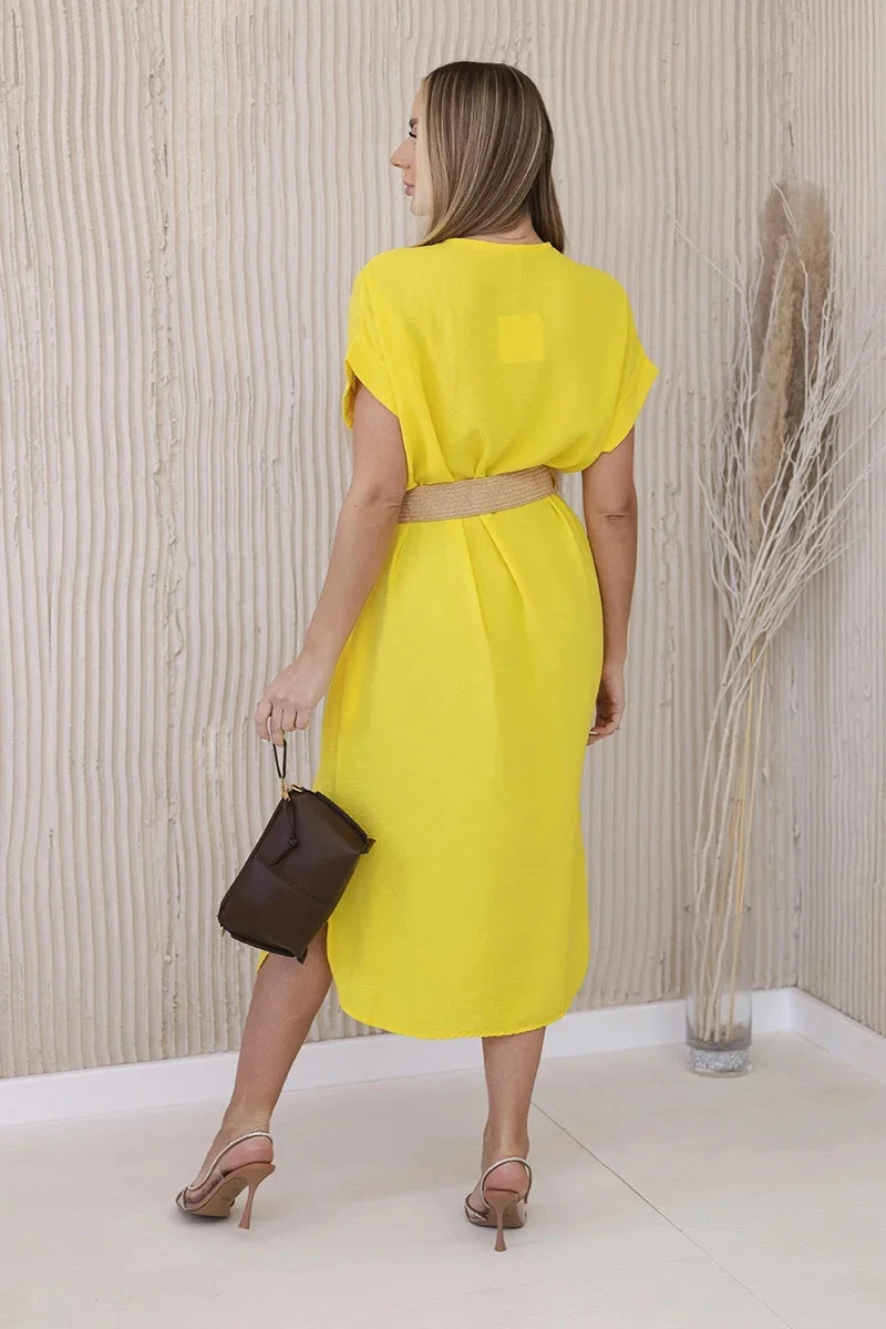 Šaty s ozdobným páskem žlutý