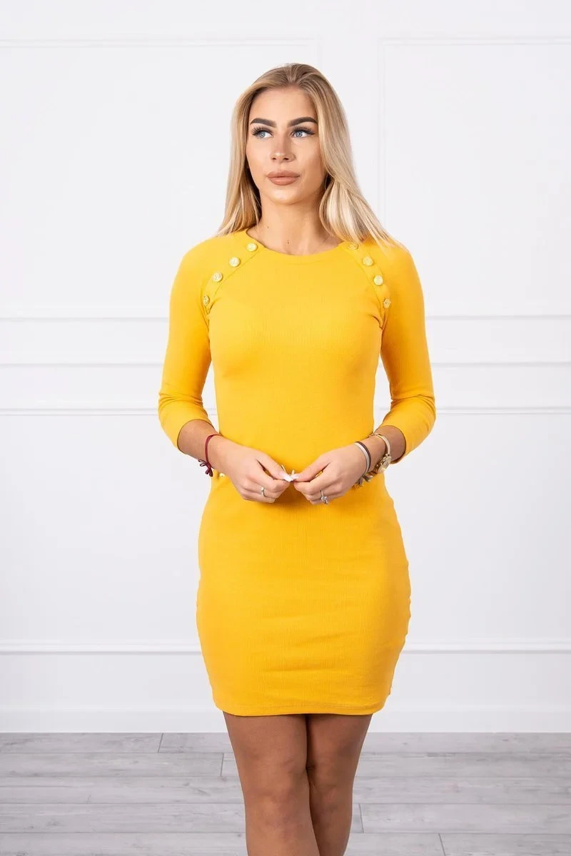 Šaty s ozdobnými knoflíky hořčicové barvy