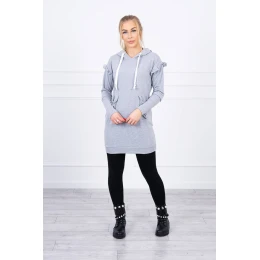 Šaty s ozdobnými volánky a kapucí šedé barvy