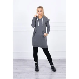 Šaty s ozdobnými volánky a kapucí v grafitové barvě
