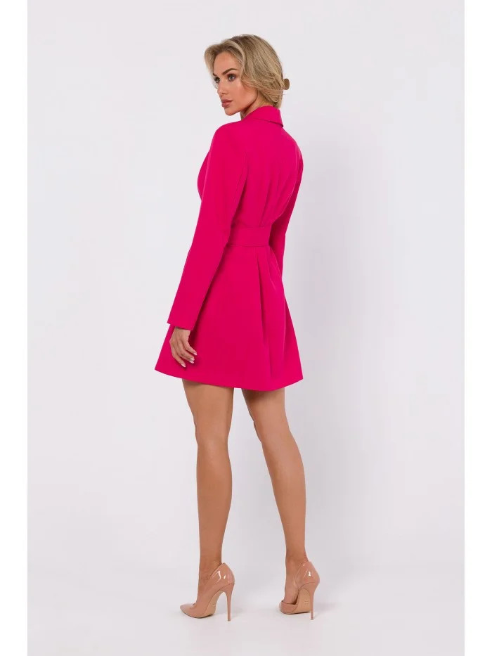 65% polyester 30% viskóza 5% elastan INFORMACE O PRODUKTU: tkaná látka blejzrové šaty s límcem dlouhé rukávy skryté knoflíky ozdobné klopy v přední části mini délka vázaná kolem pasu bez podšívky naše modelka je vysoká 171 cm a nosí velikost S Navrženo a vyrobeno v Polsku