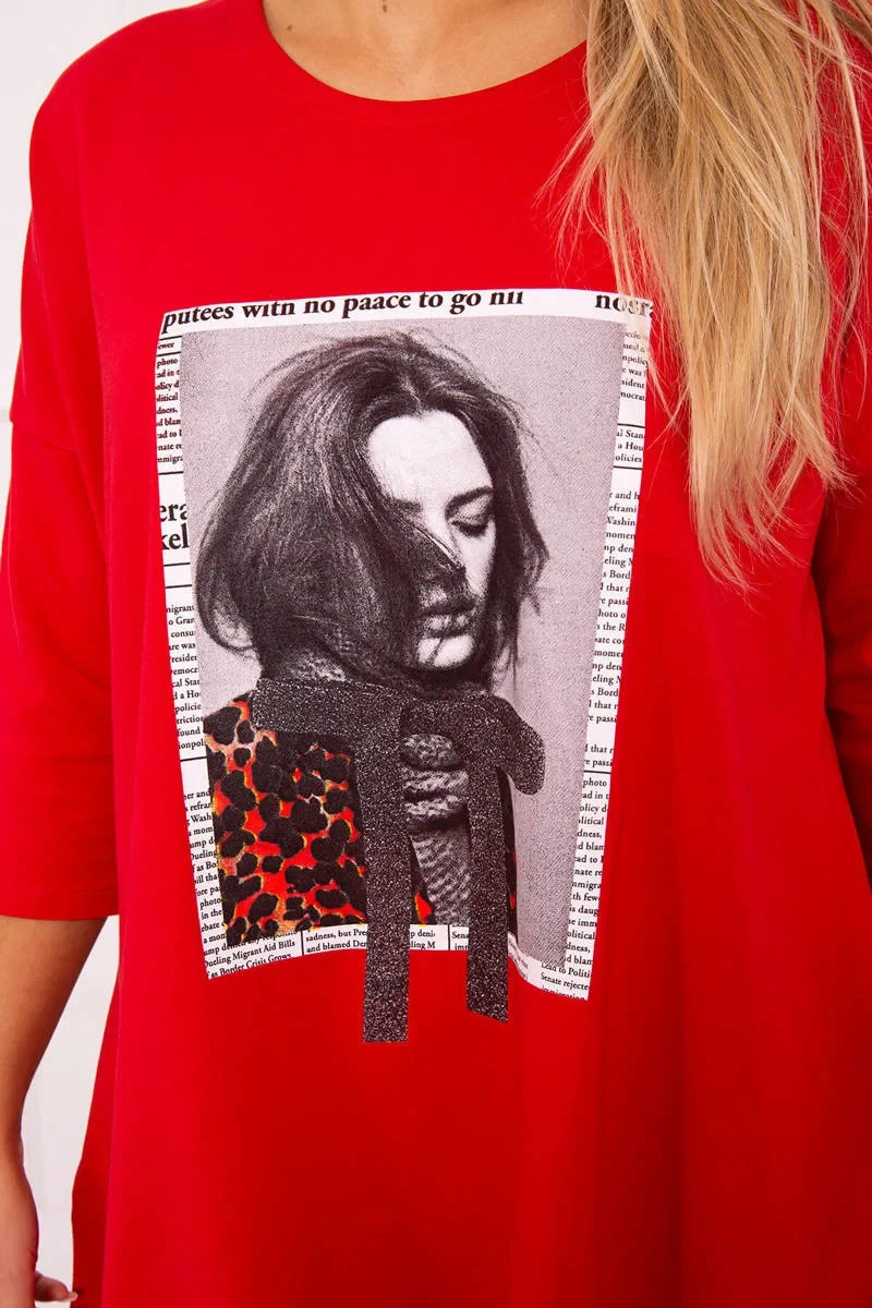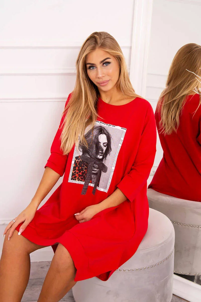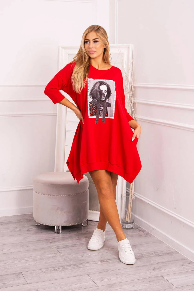 Přidání recenze k Šaty s potiskem a rozšířenou spodní částí červené