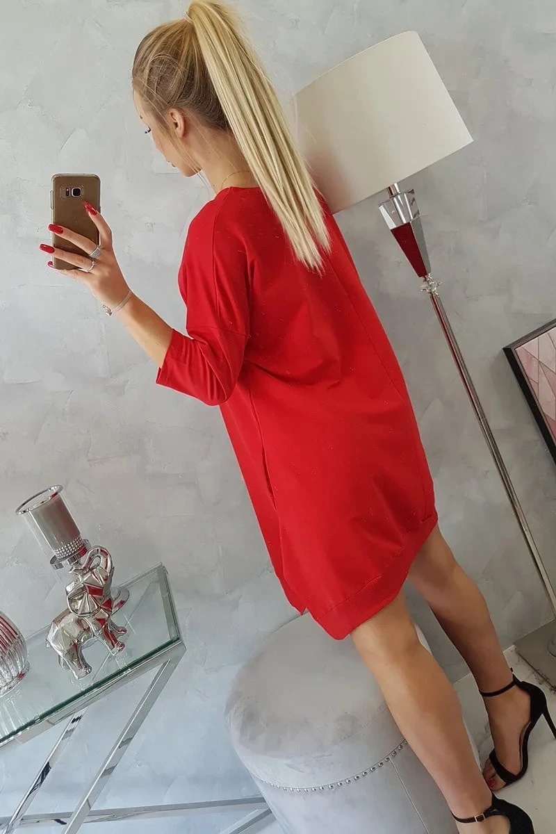 Šaty s potiskem a rozšířenou spodní částí červené