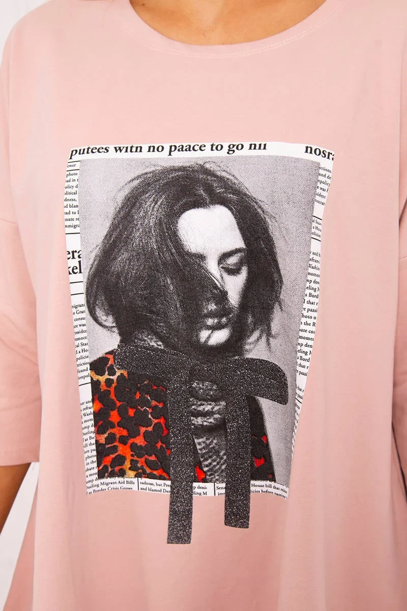 Přidání recenze k Šaty s potiskem a rozšířeným spodním dílem tmavě pudrově růžové