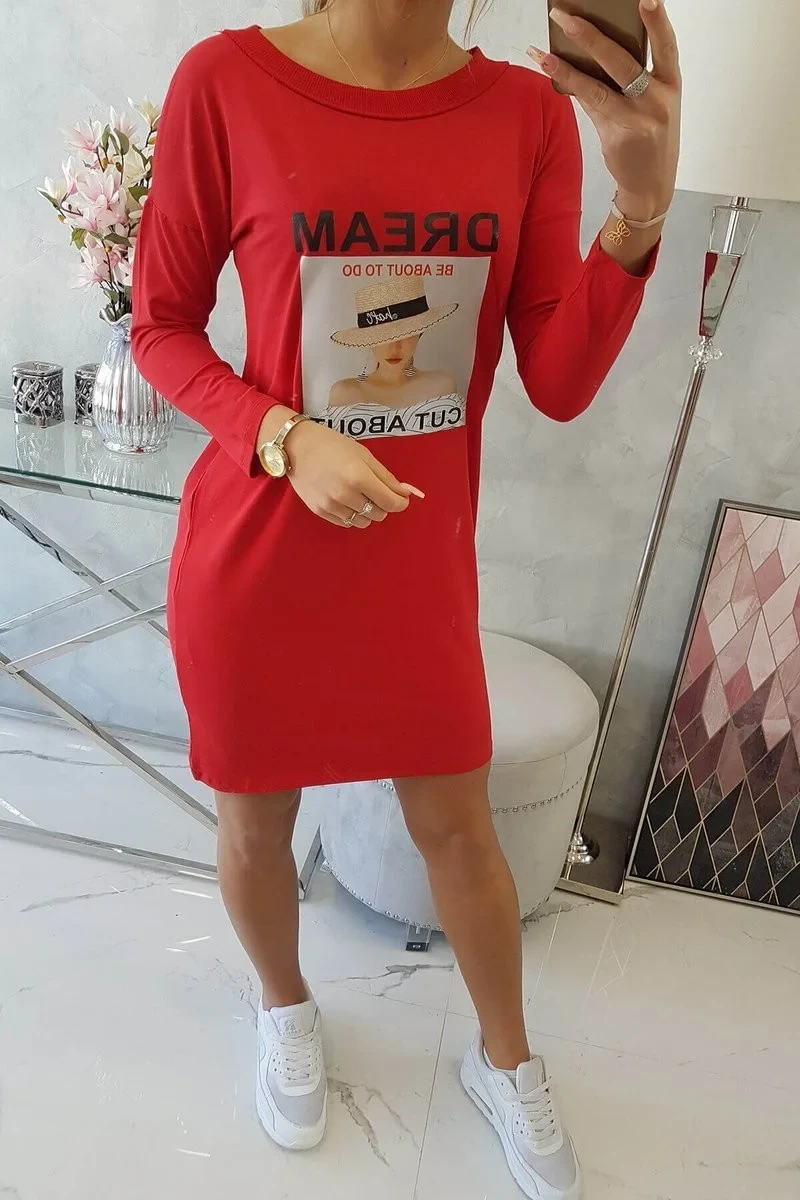 Šaty s potiskem Dream červené