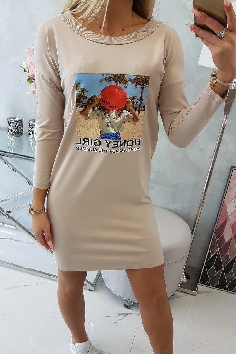 Šaty s potiskem Honey girl béžové