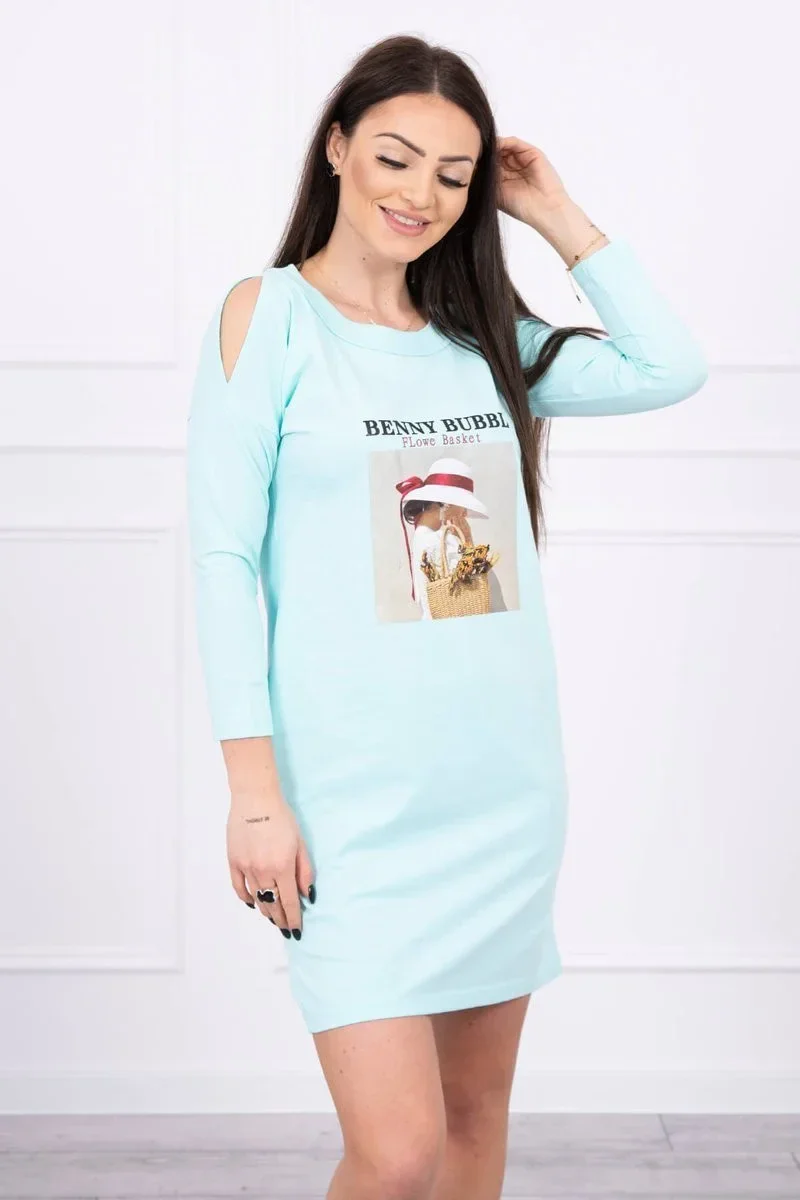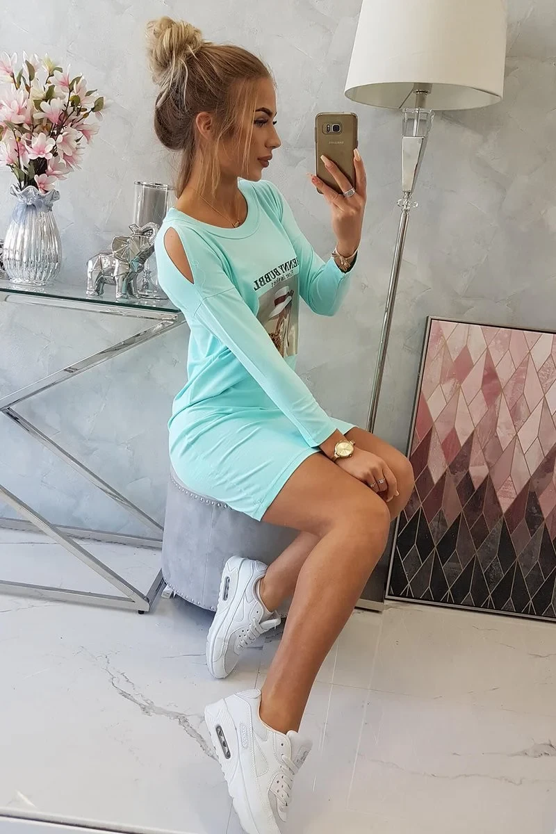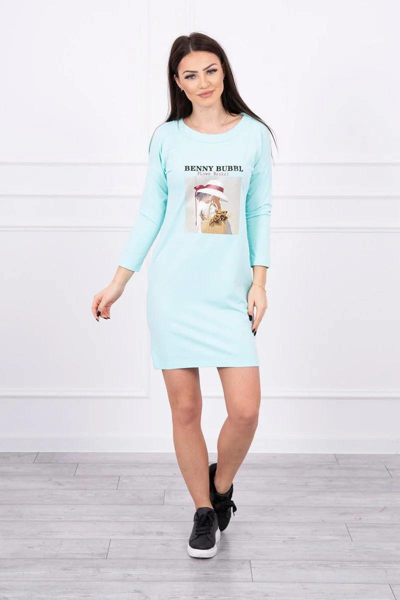 Šaty s potiskem model 18744172 v mátové barvě - K-Fashion
