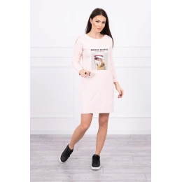 Šaty s potiskem model 18744176 v pudrově růžové barvě - K-Fashion