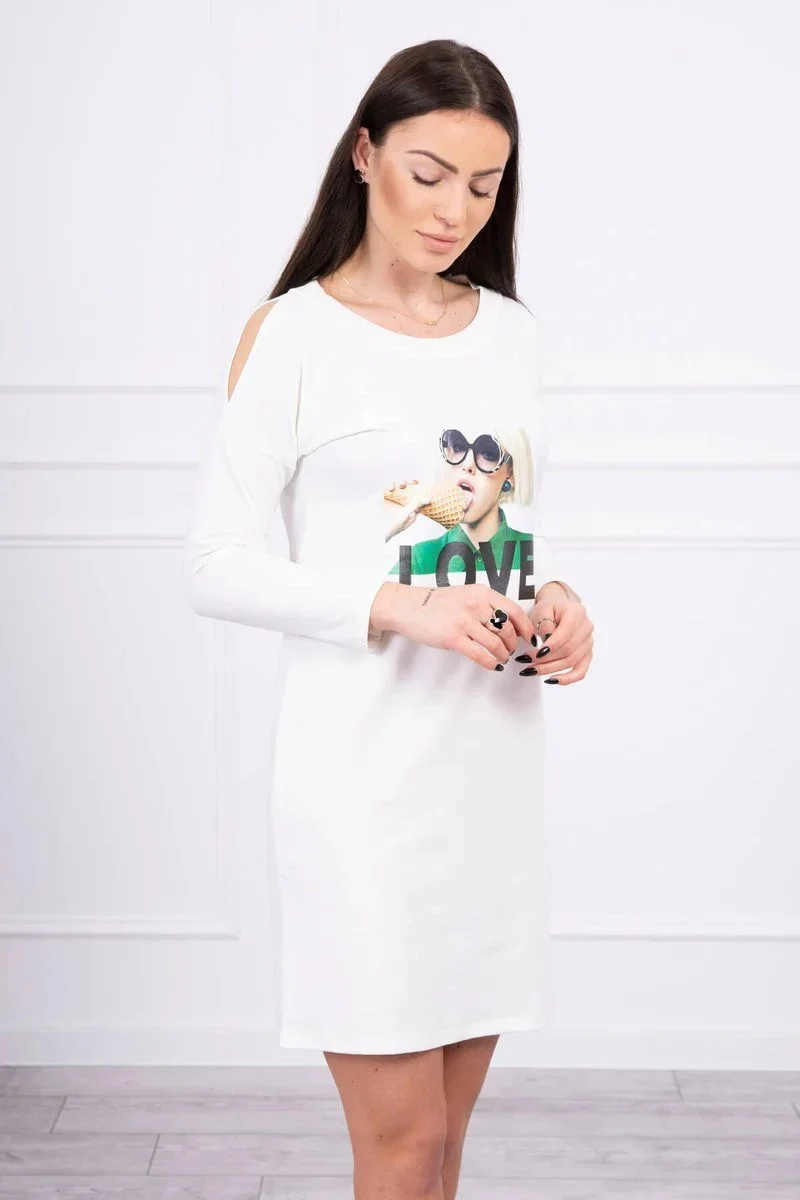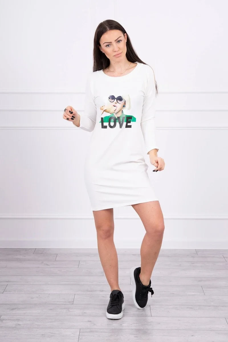 Šaty s potiskem Love ecru