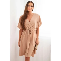 Šaty s překládaným výstřihem světlá camel