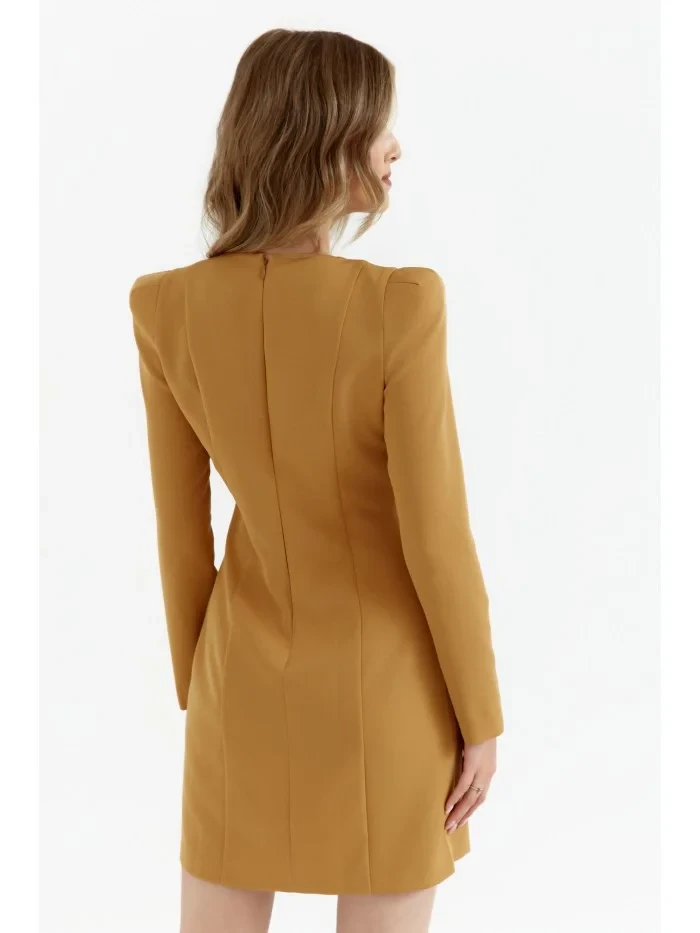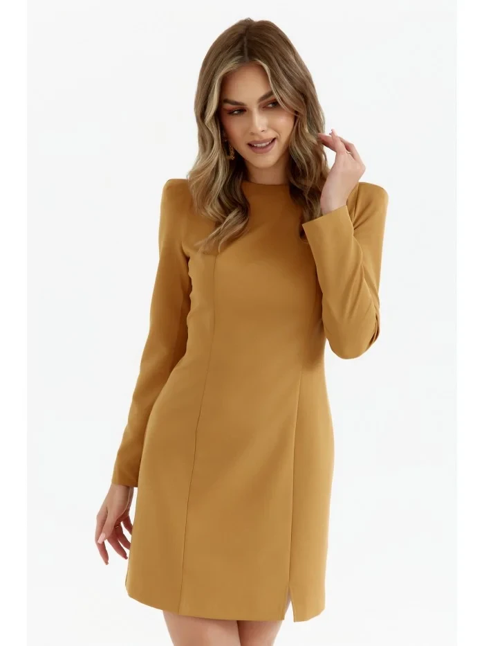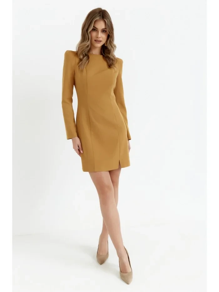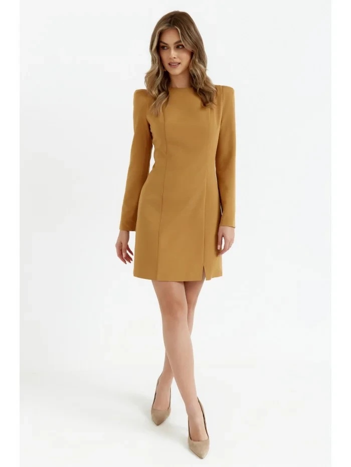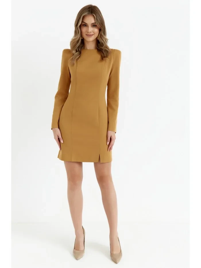 95% polyester 5% elastan INFORMACE O PRODUKTU: tkaná látka pouzdrové šaty s modelujícím prošíváním mini délka dlouhé rukávy s vycpanými rameny krátké nohavice rozdělené skrytý zadní zip bez podšívky naše modelka je vysoká 171 cm a nosí velikost S Navrženo a vyrobeno v Polsku