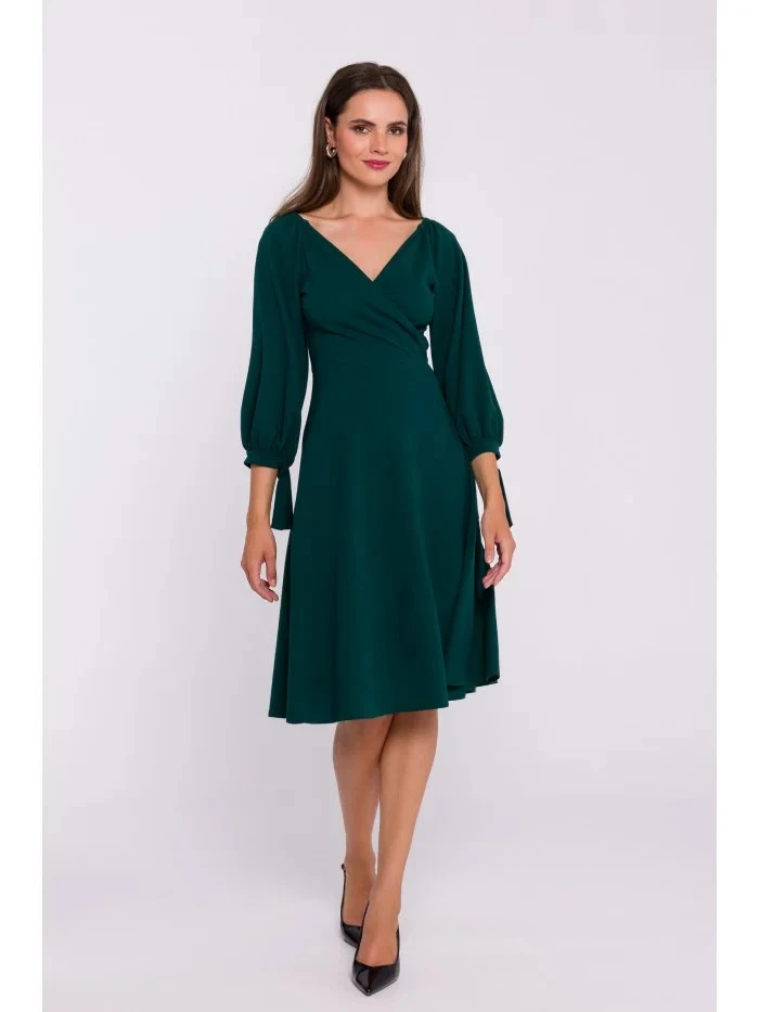 Šaty s rozšířenými rukávy model 21958994 zelené - STYLOVE