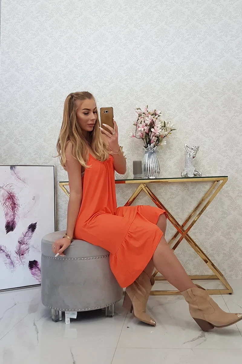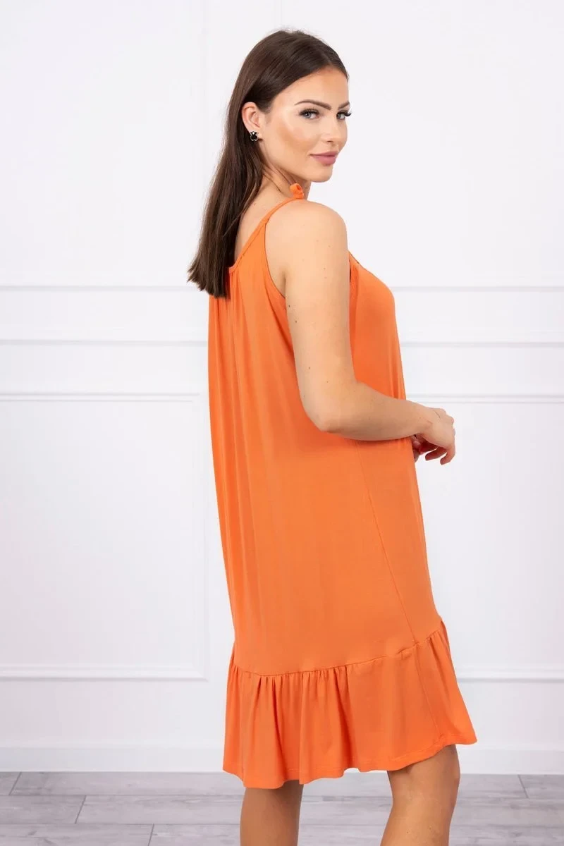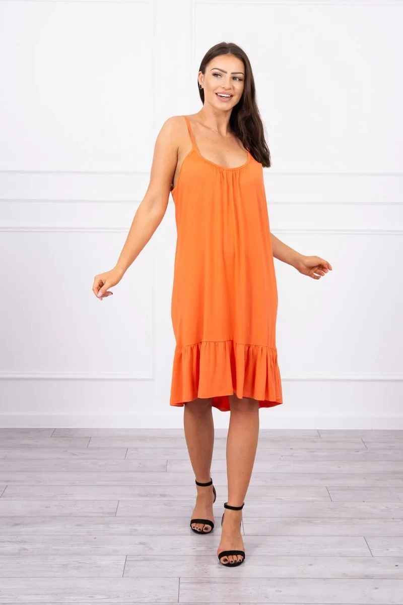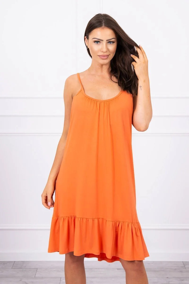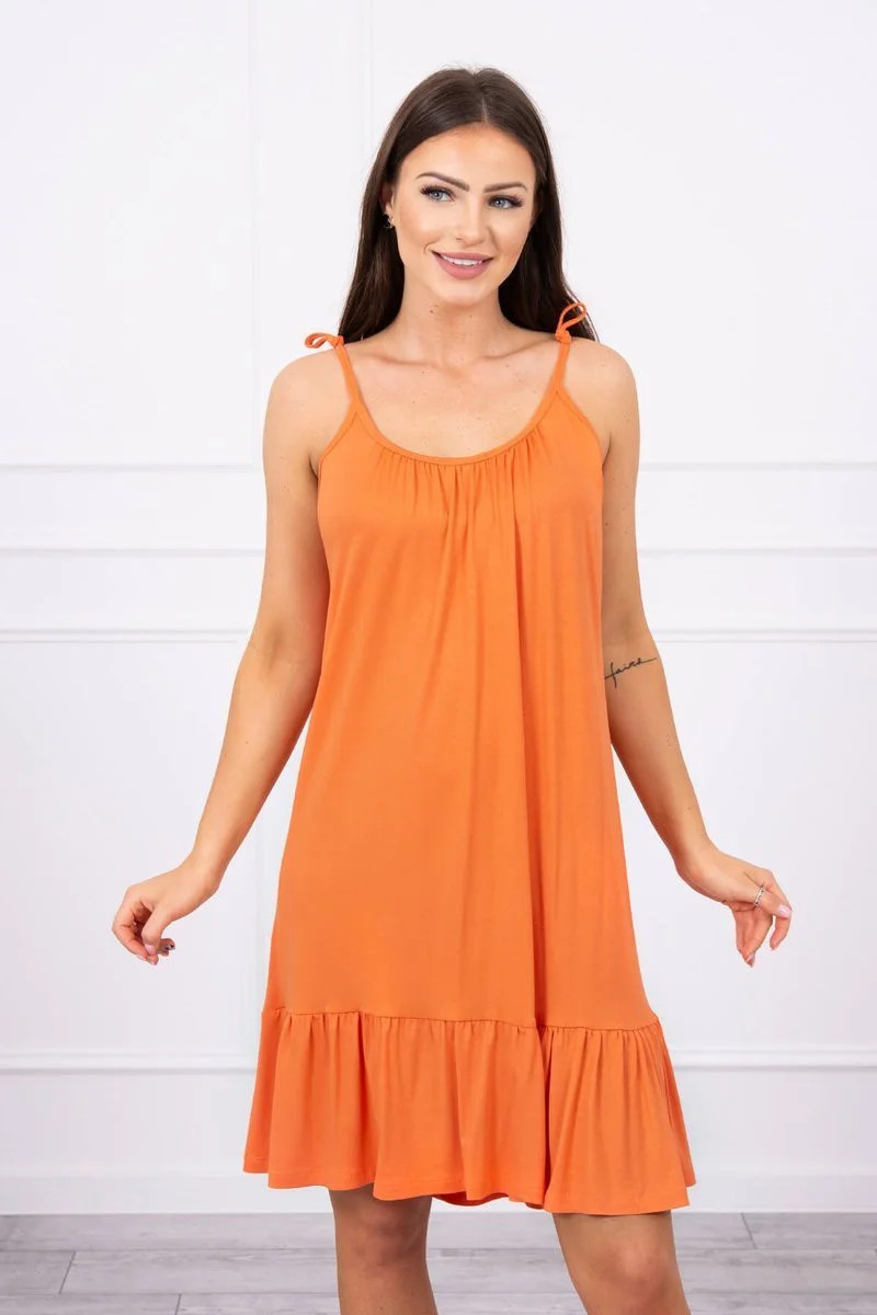 Šaty s tenkými ramínky tmavě meruňkové barvy