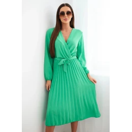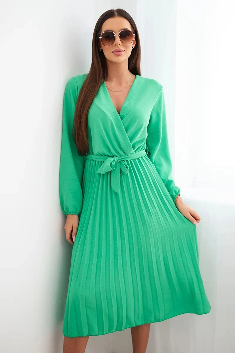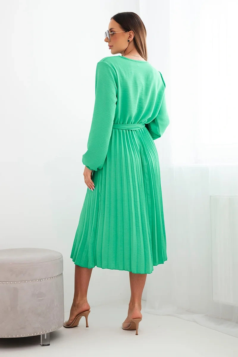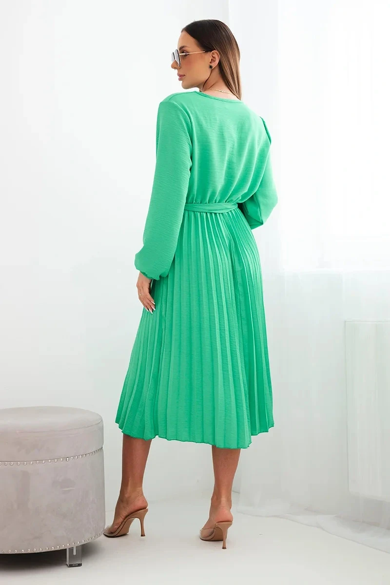 Šaty s vázáním a plisovanou sukní jasně zelená