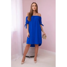 Šaty s vázáním na rukávech chrpově modré barvy