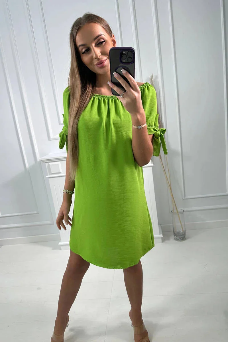Šaty s vázáním na rukávech pistáciové barvy
