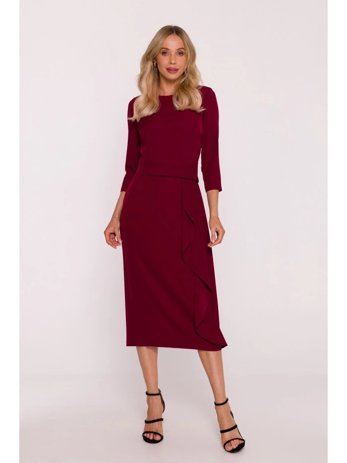 Šaty s volánkem S425 bordó - Stylove