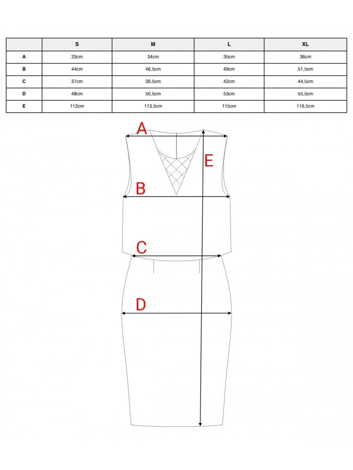 materiál: 95% polyester 5% elastan LÁTKA: hladká tkanina s jemným leskem PODROBNOSTI O PRODUKTU Výstřih: ve tvaru V s jemnou krajkovou vsadkou Rukávy: bez rukávů Sukně: vypasovaný tužkový střih s rozparkem na zádech Horní díl: dvouvrstvý - volnější horní vrstva decentně zakrývá pas a boky Zapínání: dva skryté zipy na zádech Model: S422 Navrženo a vyrobeno v Polsku Modelka je vysoká 174 cm a nosí velikost S STYL A STŘIH Styl: elegantní tužkové šaty s dvouvrstvým horním dílem Tvar: vypasovaná sukně, volnější horní díl s krajkovým detailem Délka: pod kolena