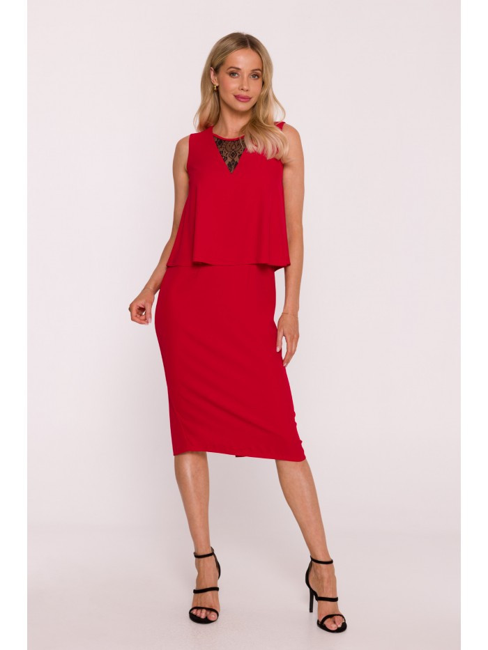 Šaty s vsadkou červené model 21470652 - STYLOVE