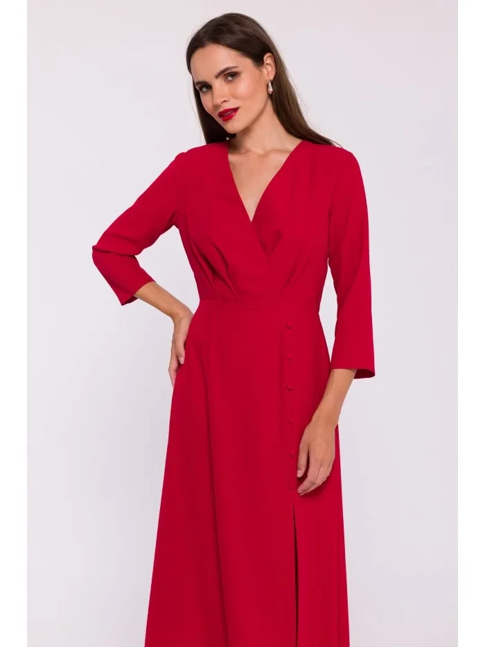 Šaty s vysokým rozparkem S385 červené - Moe