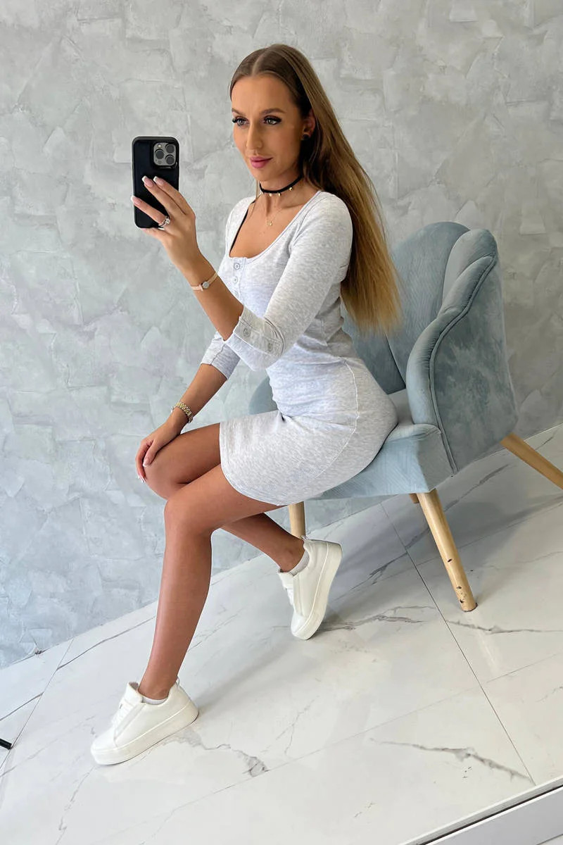 Šaty s výstřihem na knoflíky světle šedé