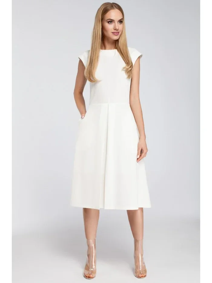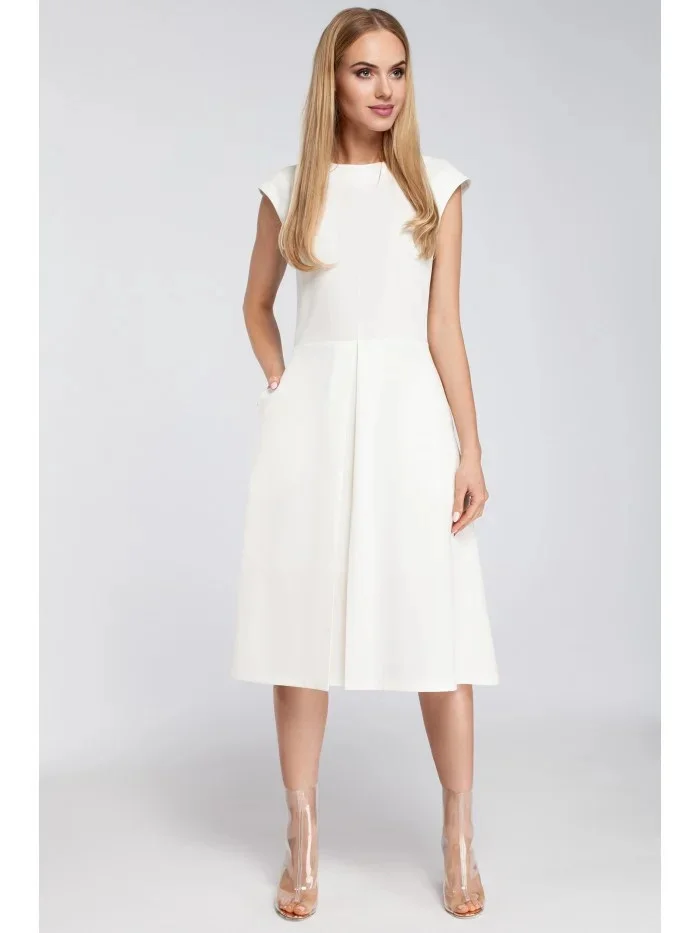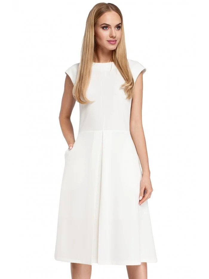 Šaty s záhyby ecru barva model 15102606 - Moe