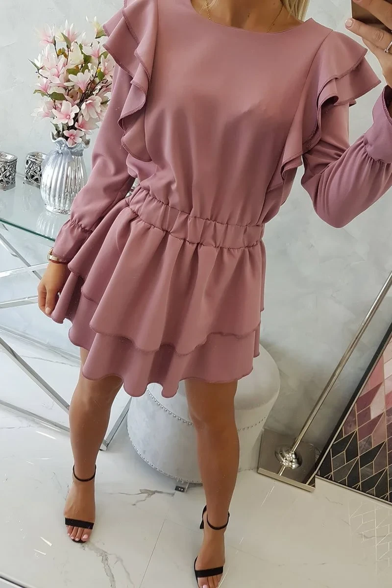 Šaty se model 18743660 volány tmavě růžové - K-Fashion