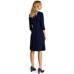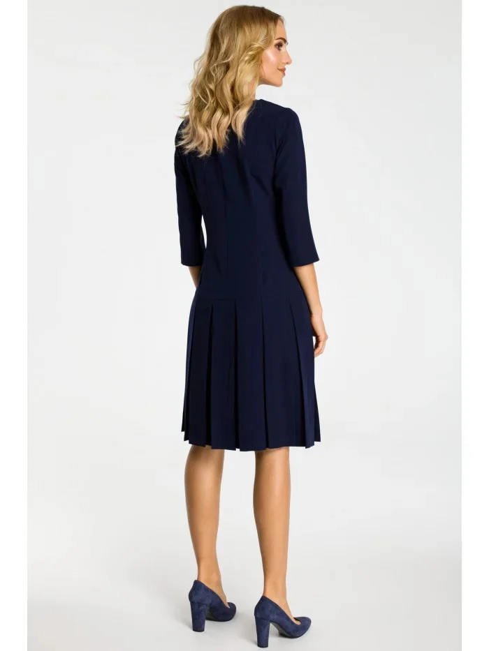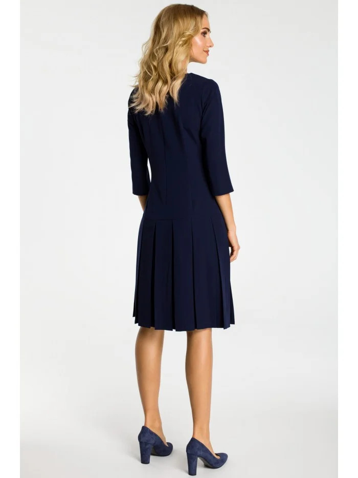 Šaty se pasem a záhyby tmavě modré model 18001701 - Moe