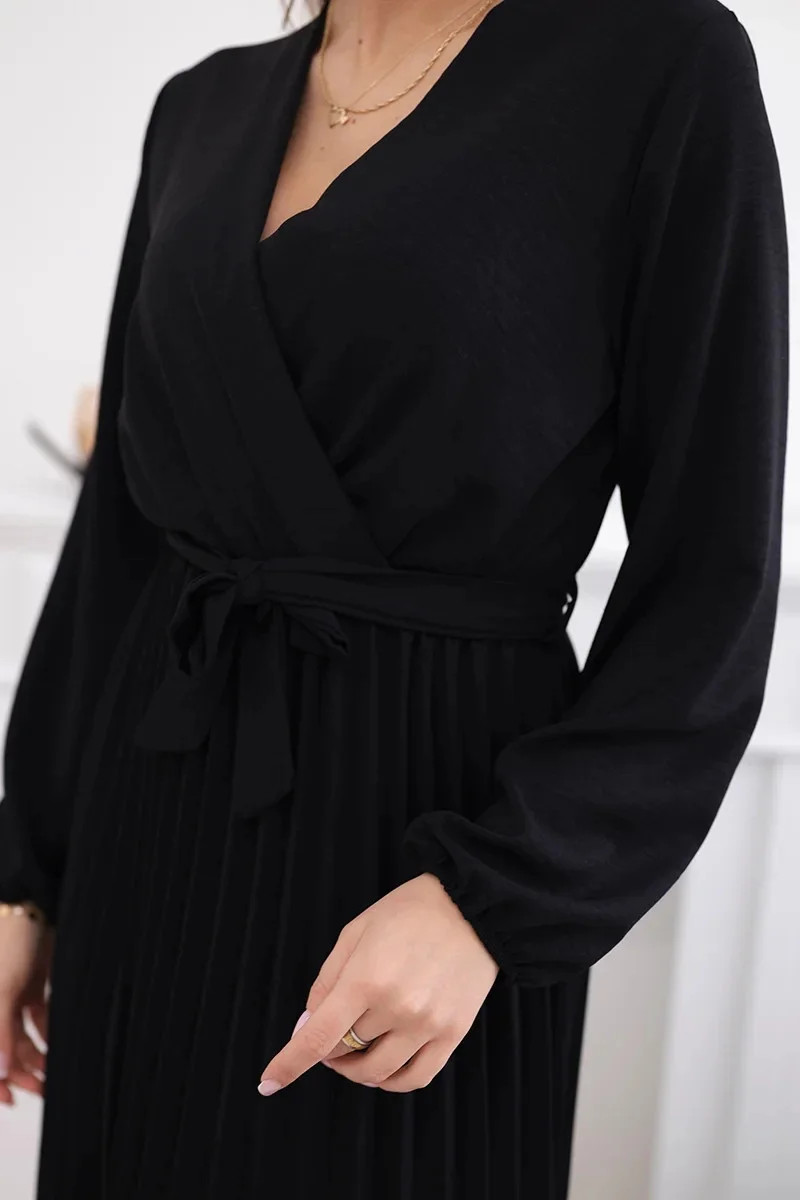 Přidání recenze k Šaty se svázaným plisovaným lemem černý