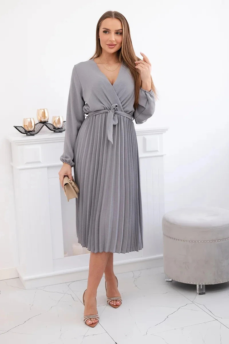 Přidání recenze k Šaty se svázaným plisovaným lemem šedý