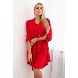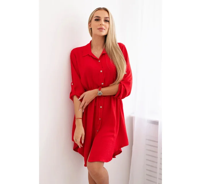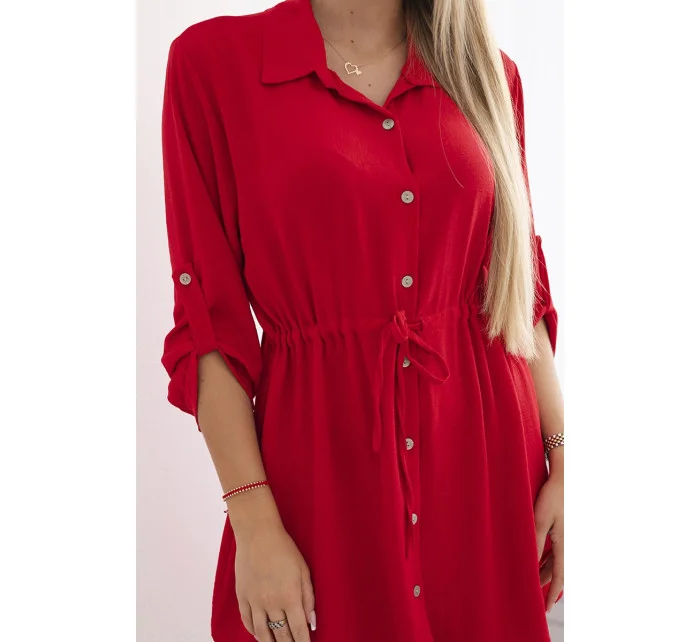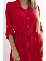 Šaty se zapínáním na knoflíky a zavazováním v pase červený