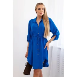 Šaty se zapínáním na knoflíky a zavazováním v pase chrpově modrá