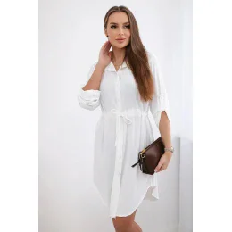 Šaty se zapínáním na knoflíky a zavazováním v pase ecru