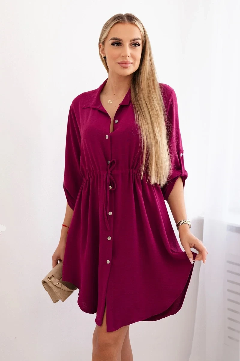 Šaty se zapínáním na knoflíky a zavazováním v pase švestka