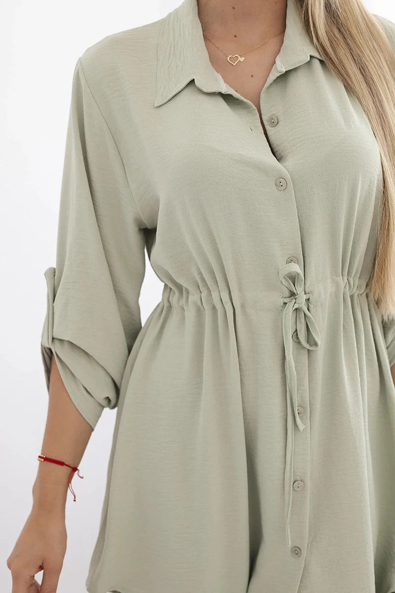 Šaty se zapínáním na knoflíky a zavazováním v pase tmavá máta