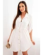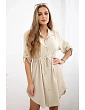 Šaty se zapínáním na knoflíky a zavazováním v pase tmavě béžová