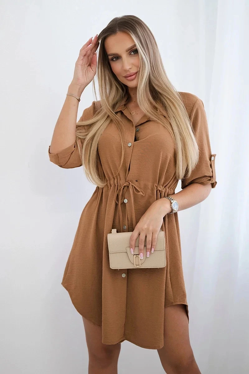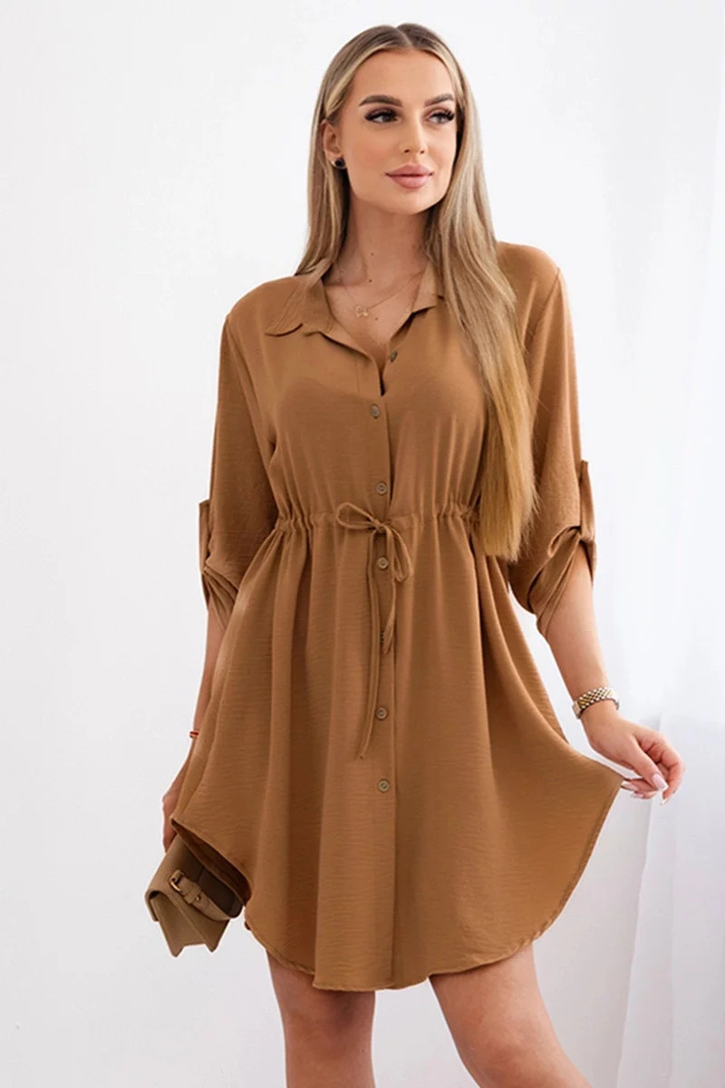 Šaty se zapínáním na knoflíky30112 tmavě hnědé - Kesi