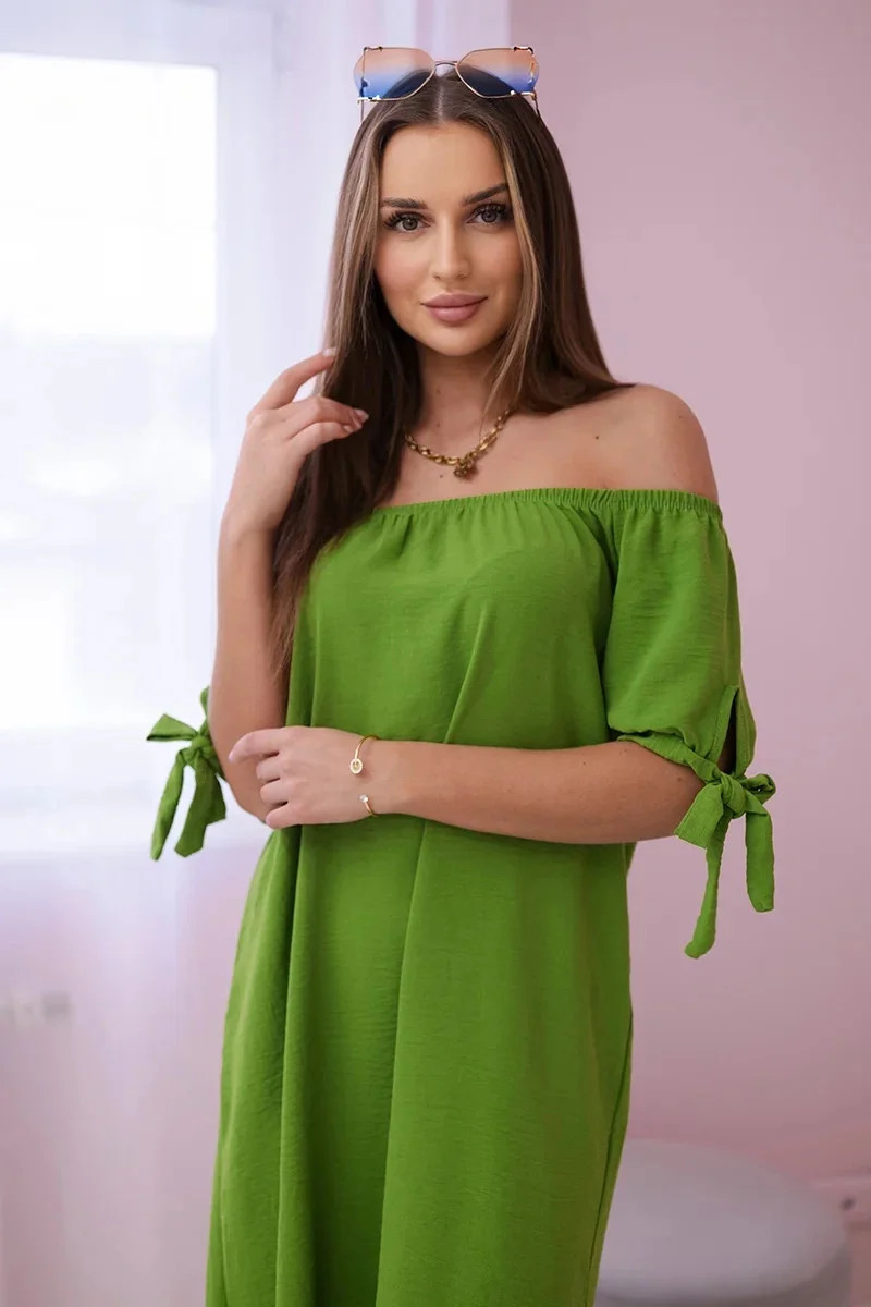 Šaty svázané na rukávech oliva