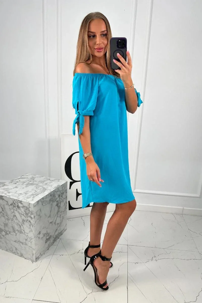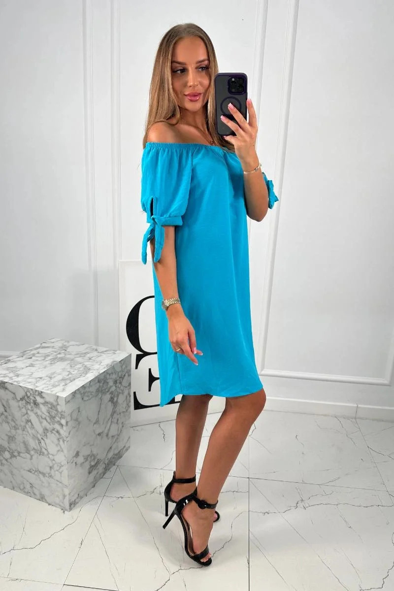 Šaty svázané na rukávech tyrkys