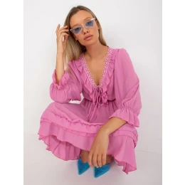 Růžové boho mini šaty s volánem Winona OCH BELLA .