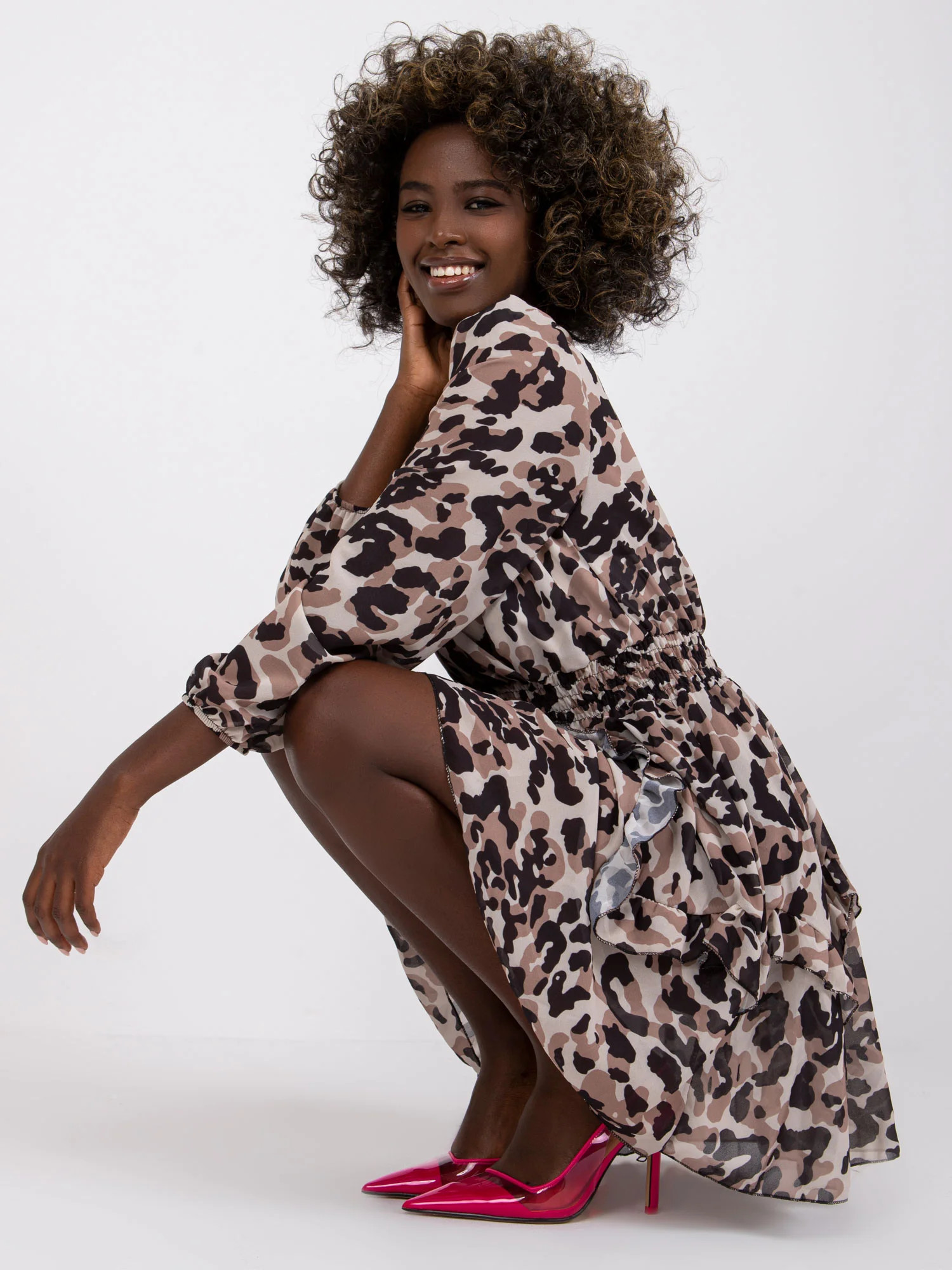 Modelka má na sobě jednu velikost. Rozměry modelky: výška 168 cm, prsa 82 cm, pas 62 cm, boky 93 cm.