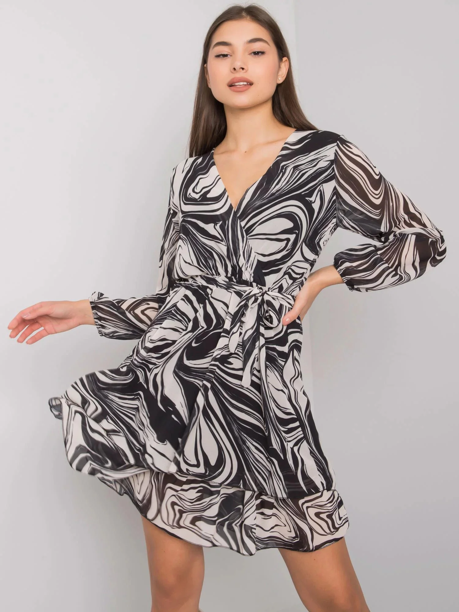 OCH BELLA Černo-béžové vzorované šaty.