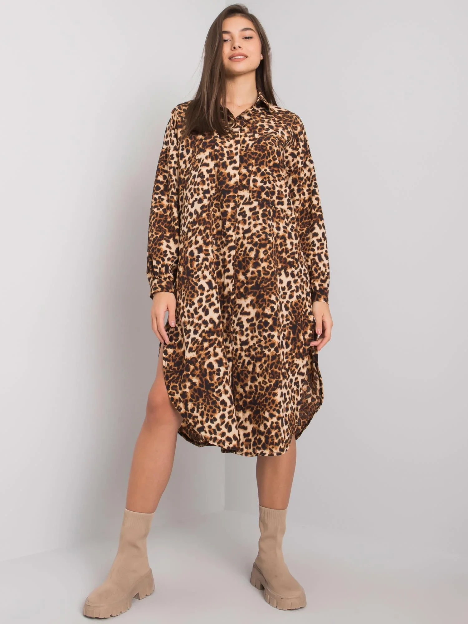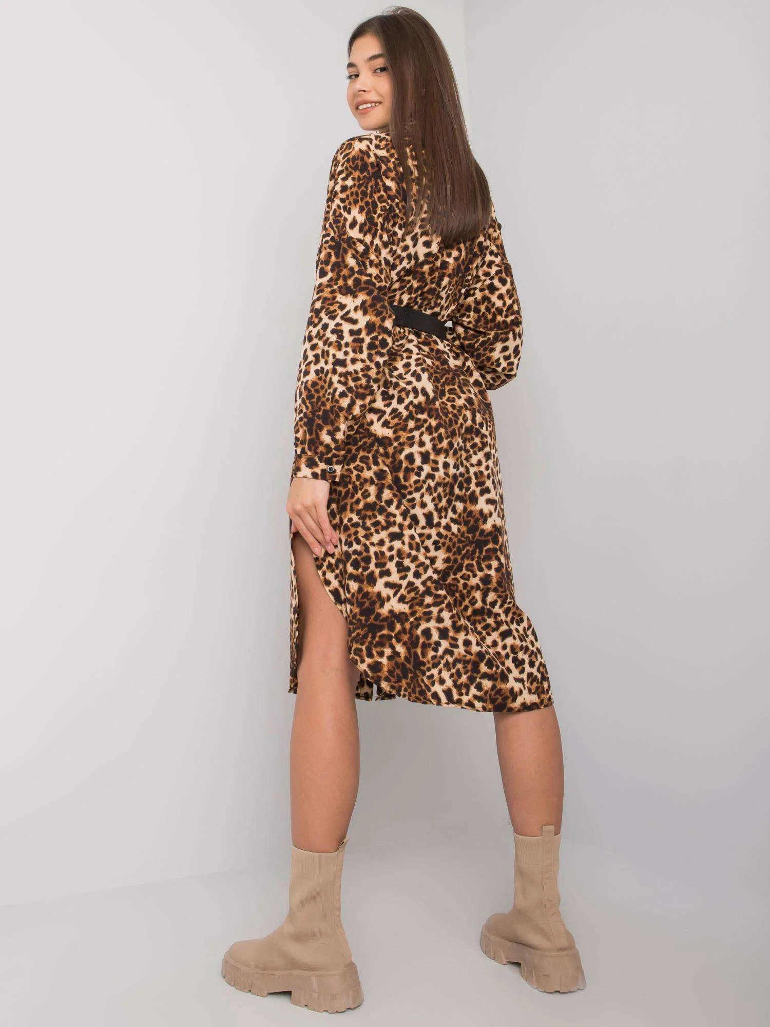 OCH BELLA Béžové skvrnité košilové šaty.