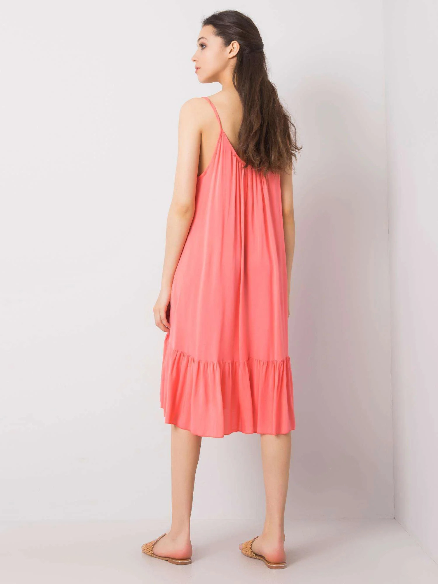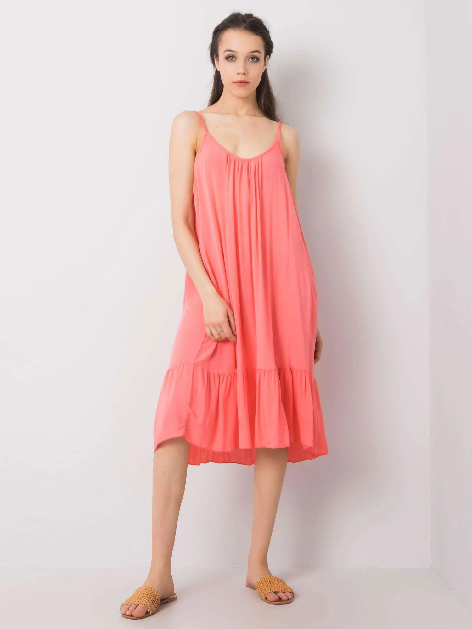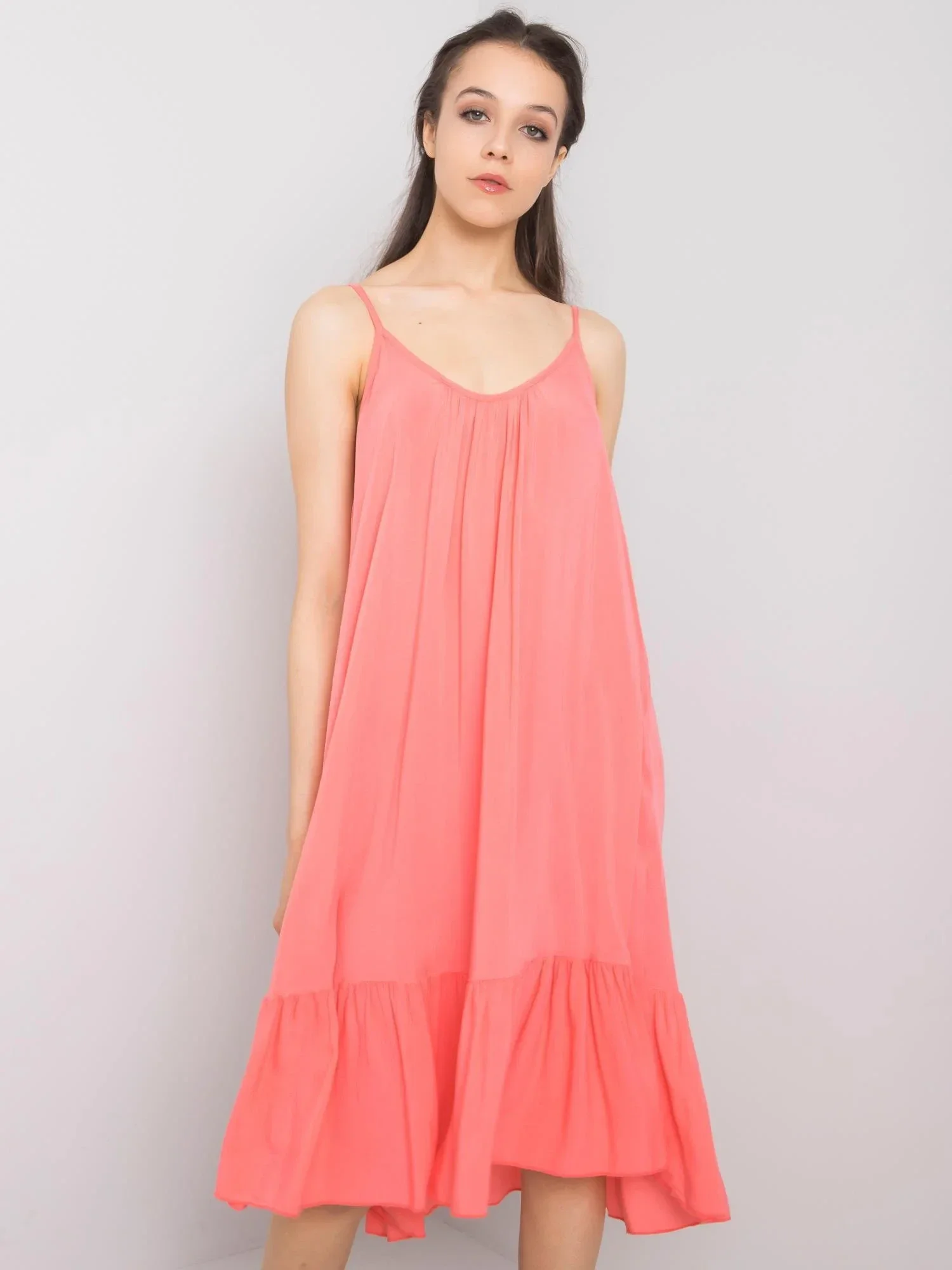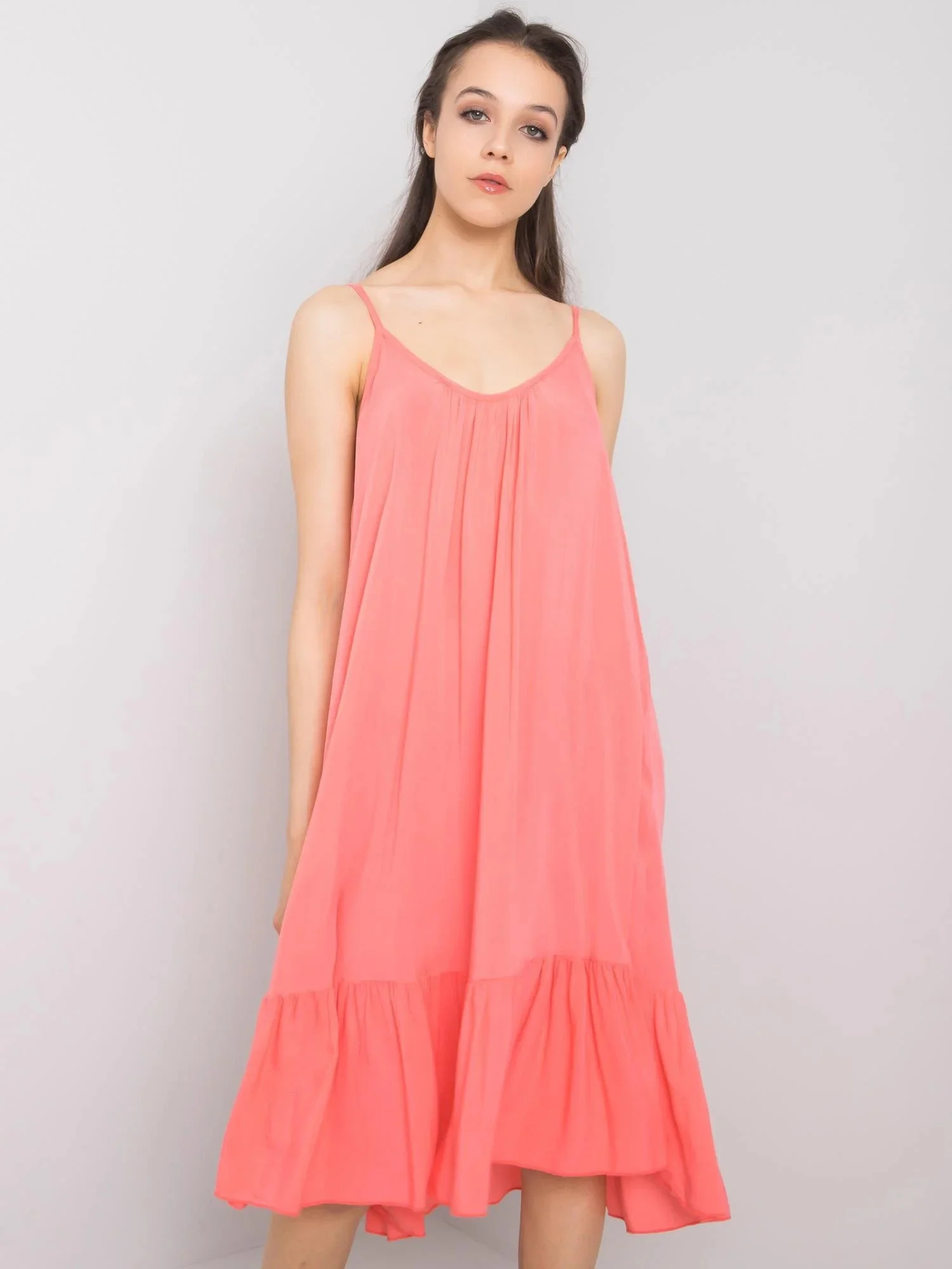 OCH BELLA Dámské korálové šaty s volánem.