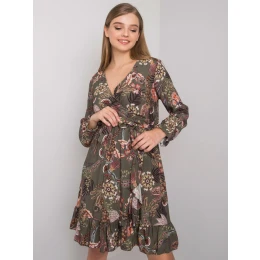 OCH BELLA Khaki šaty s obálkovým výstřihem.