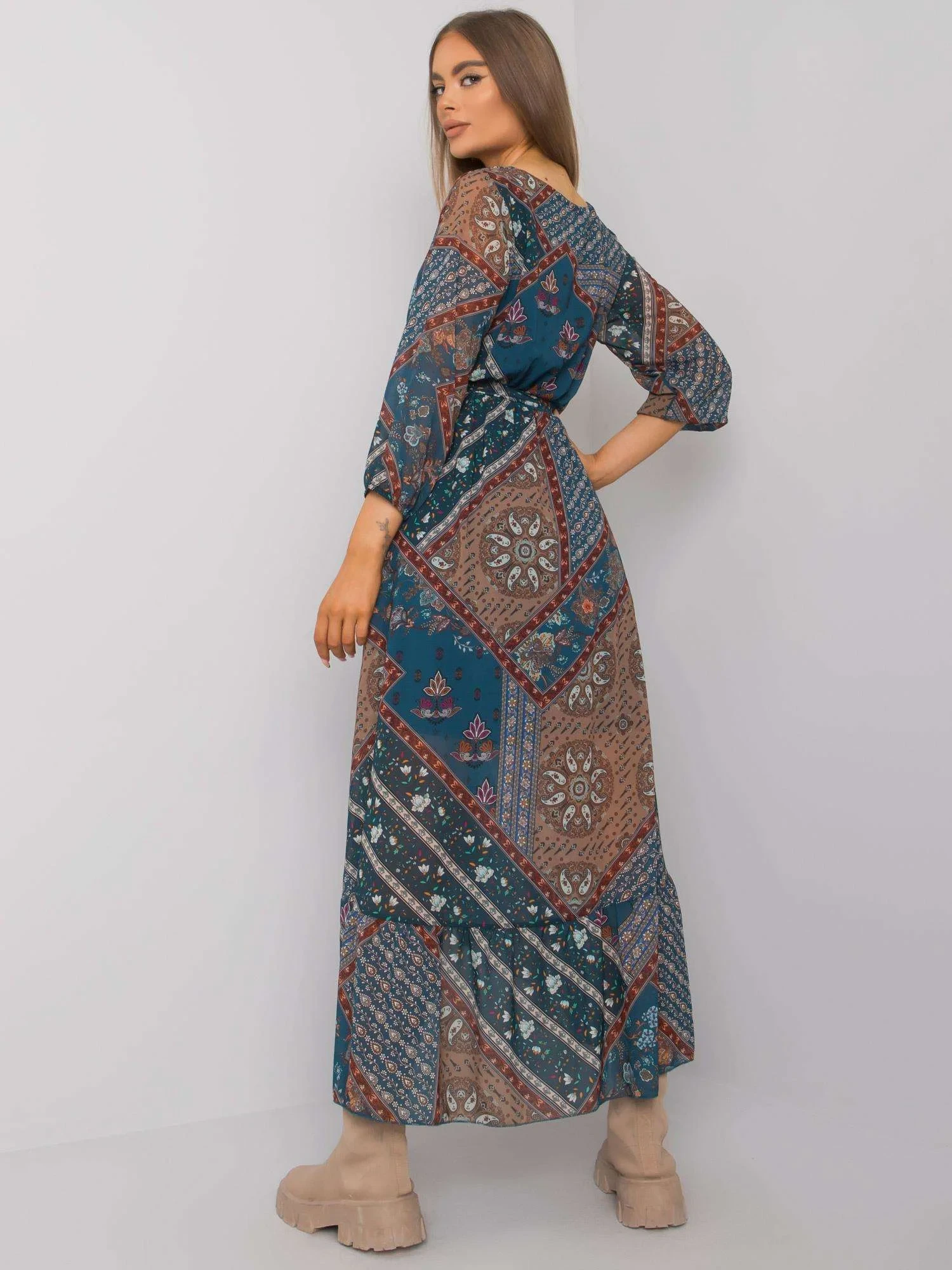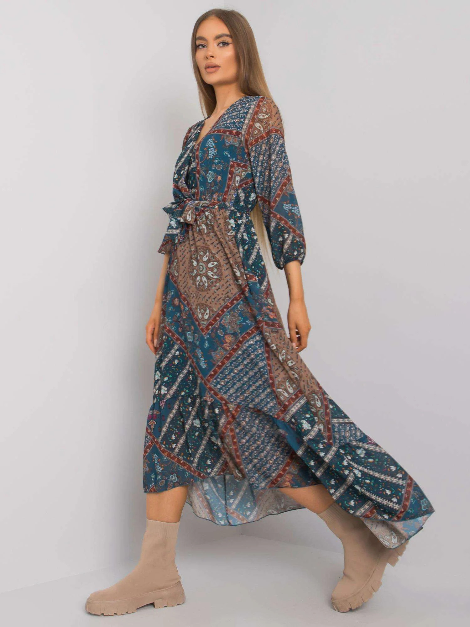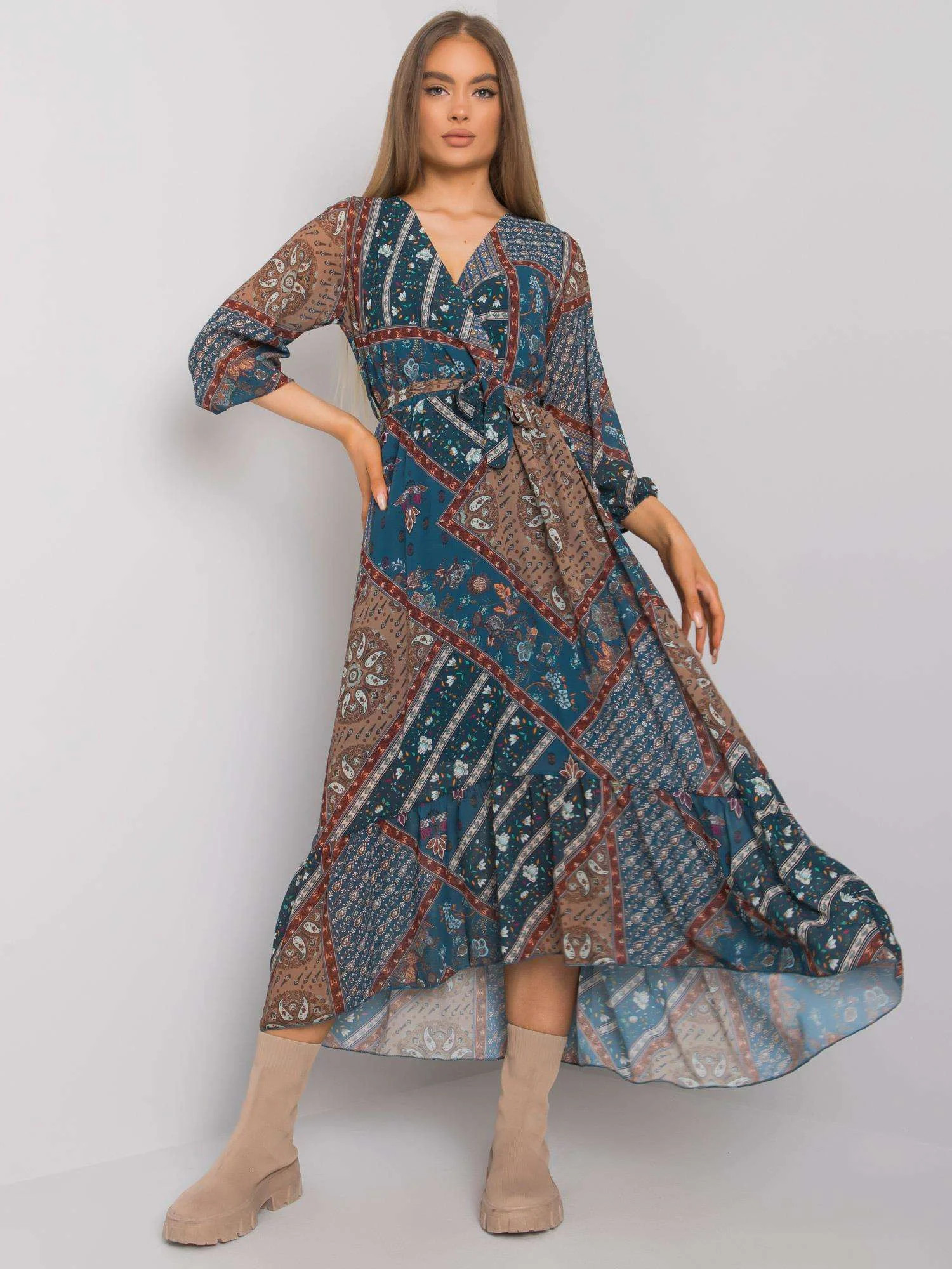 OCH BELLA Mořsky modré vzorované šaty s volánem.