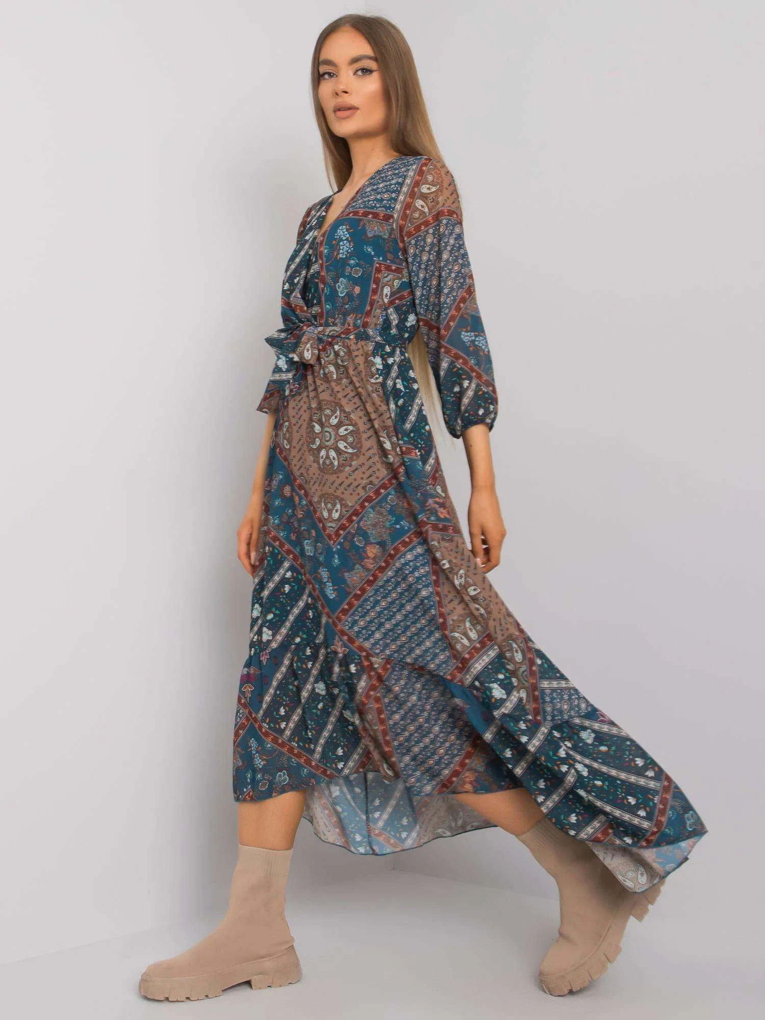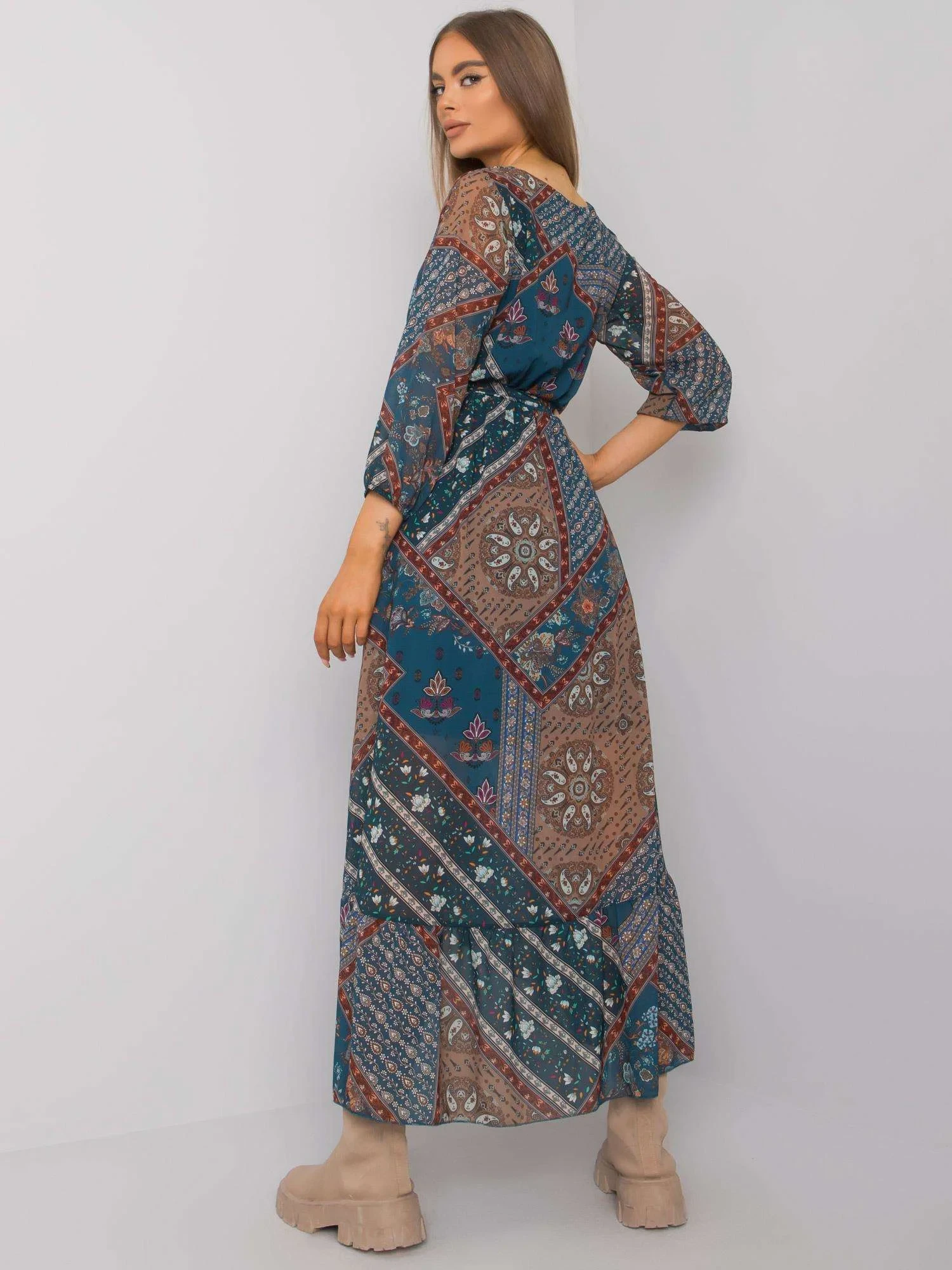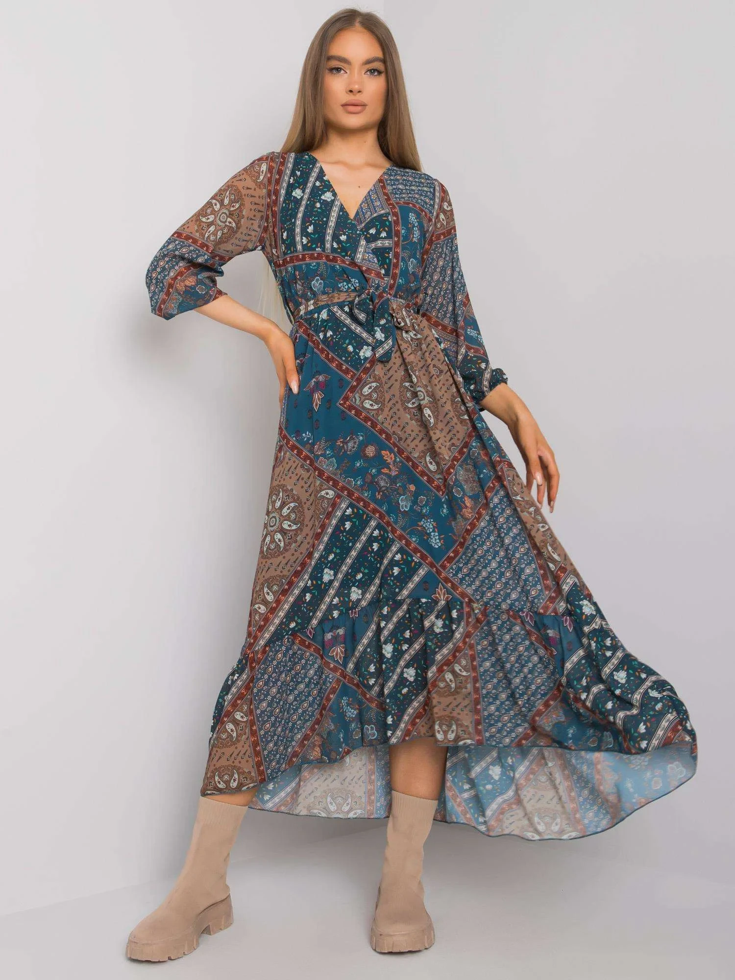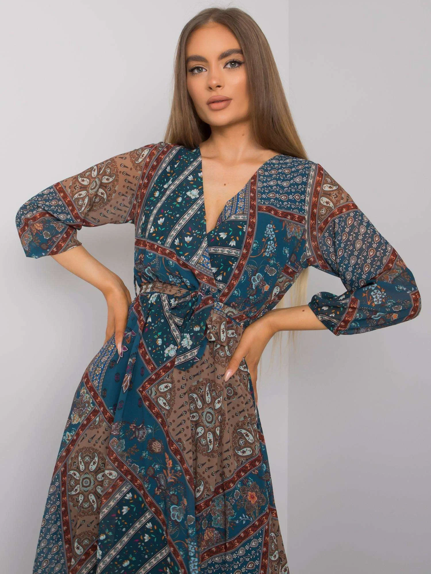 Modelka má na sobě jednu velikost. Rozměry modelky: výška 174 cm, prsa 83 cm, pas 62 cm, boky 96 cm.
