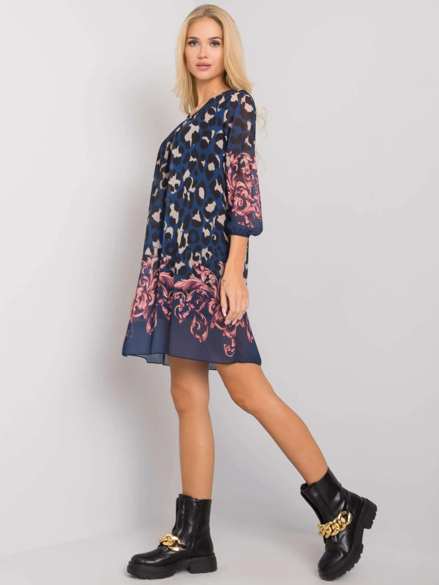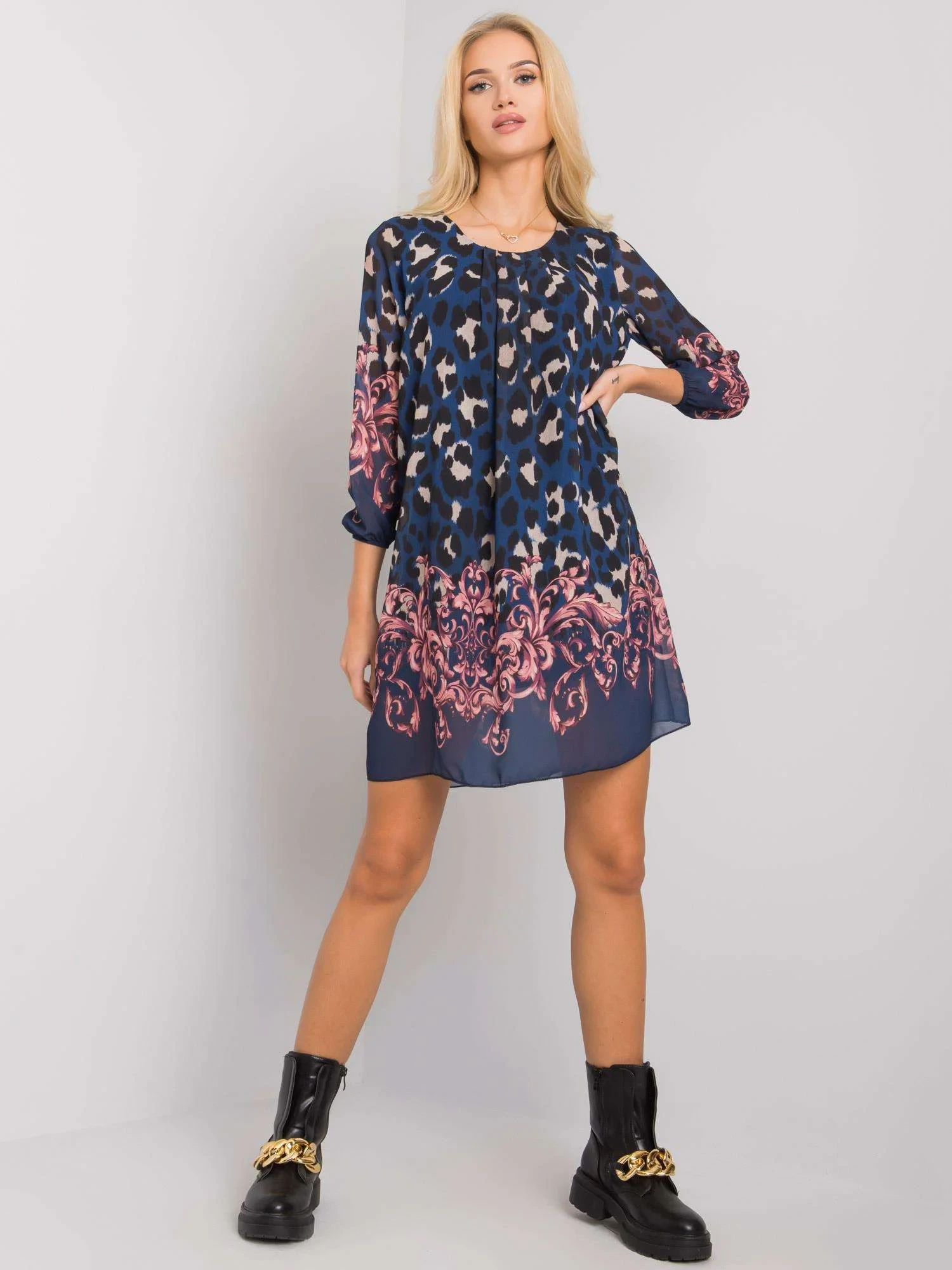 Tmavě modré strakaté šaty OCH BELLA.
