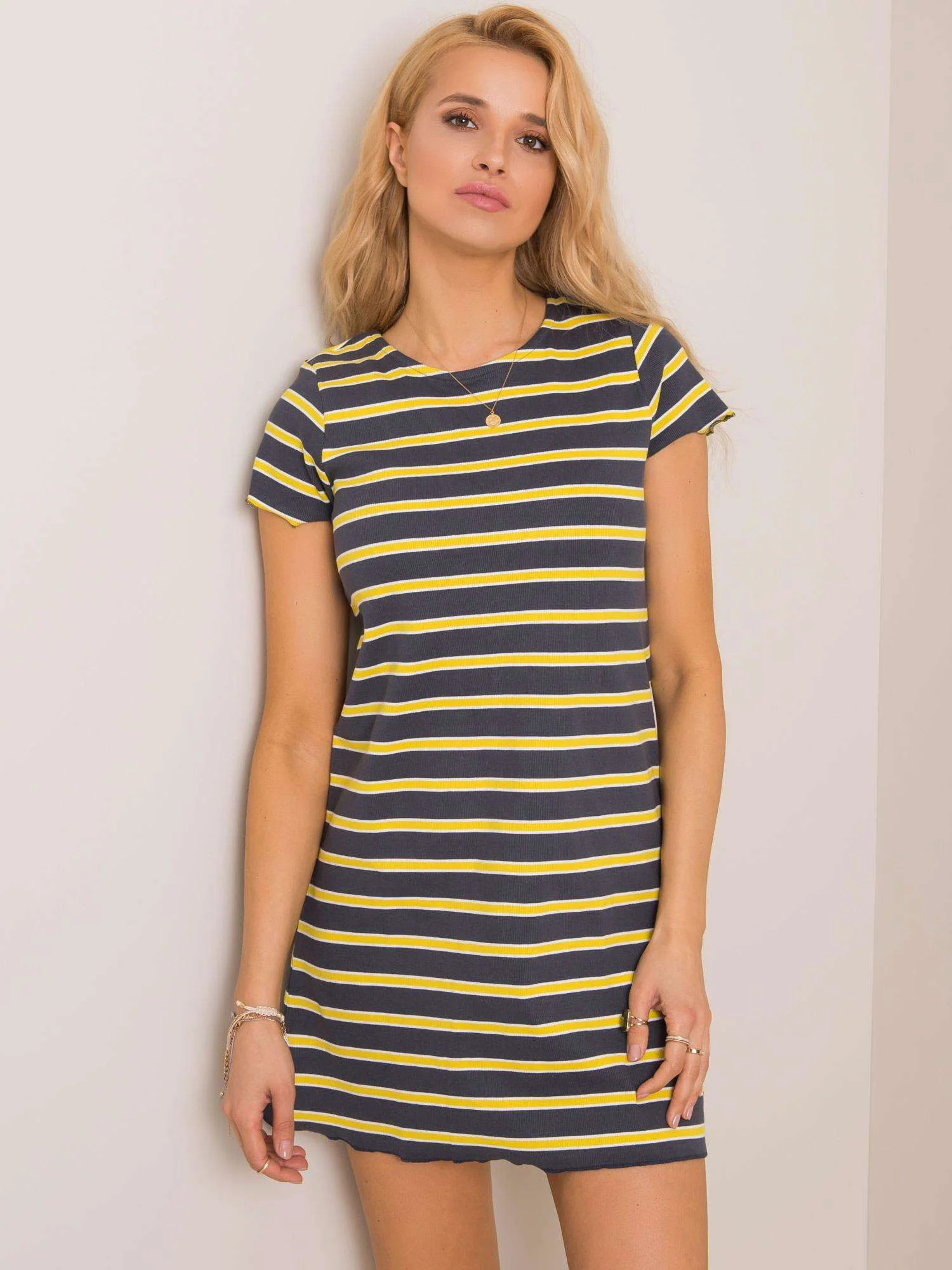 YOU DON'T KNOW ME Šedožluté pruhované šaty.