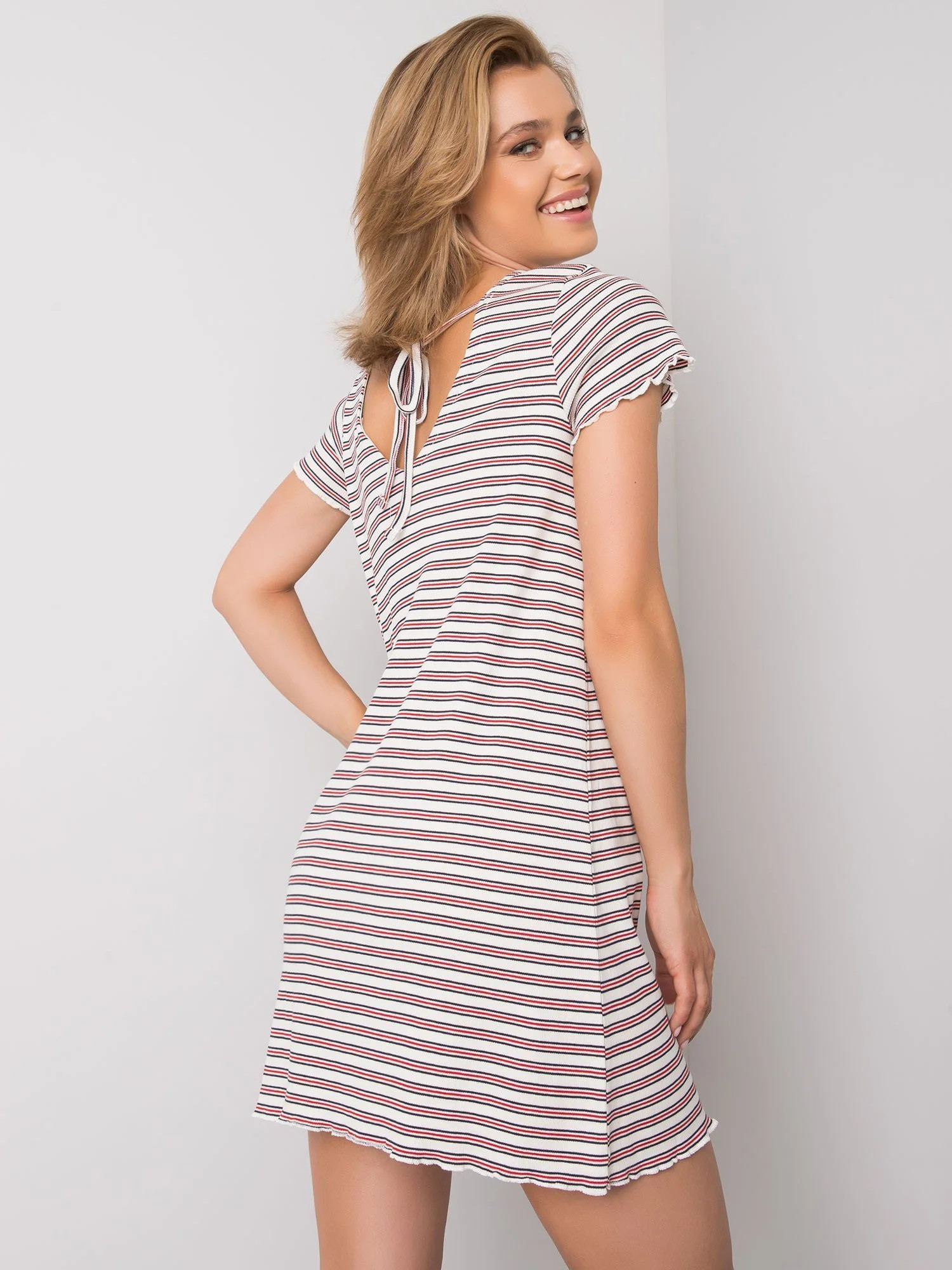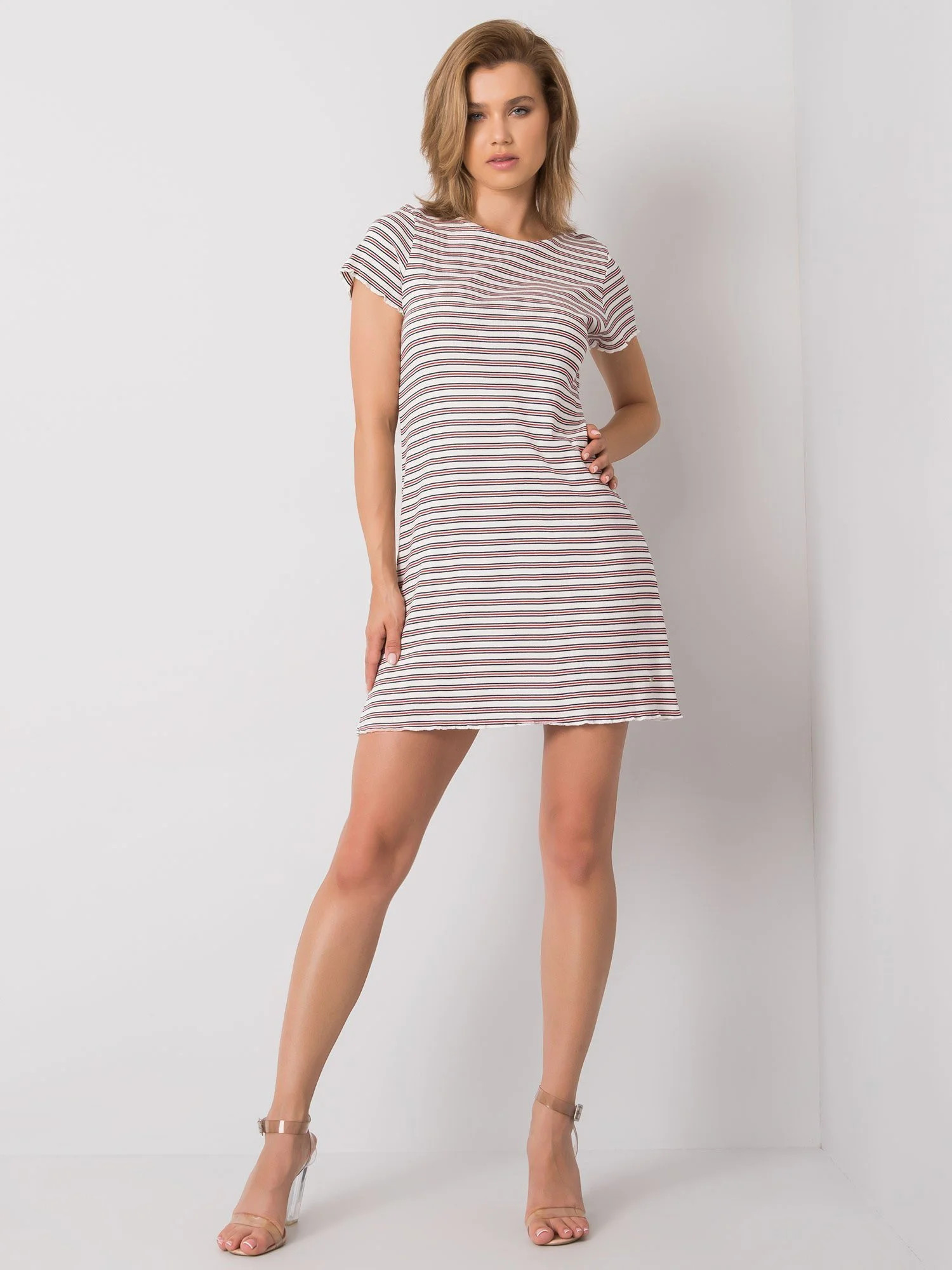 NEZNÁTEMĚ Červenobílé pruhované šaty.